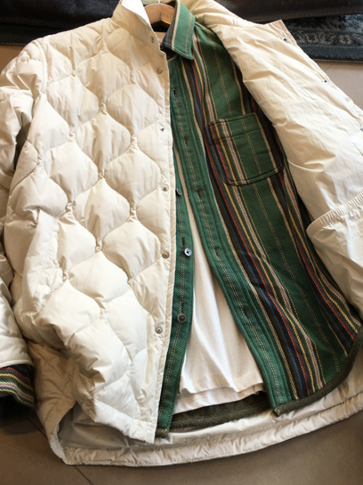 羽绒服整体表面 轻量化衍线,减少膨胀感,简洁大方,衬衫式的设计,给本为传统的羽绒服增添潮流,帅气有型。