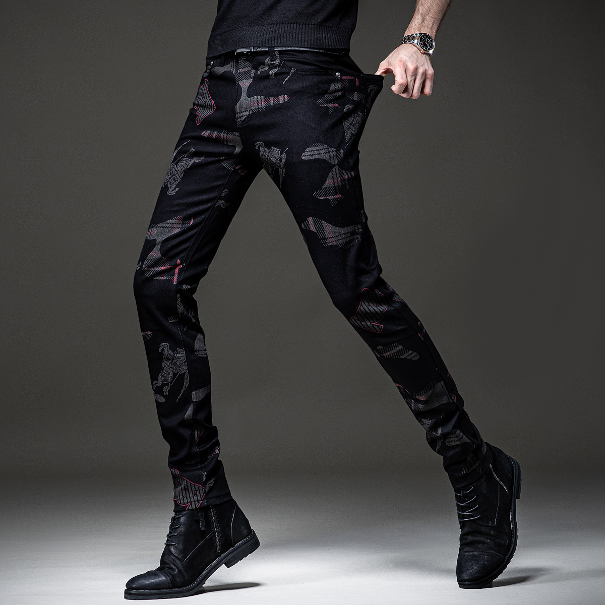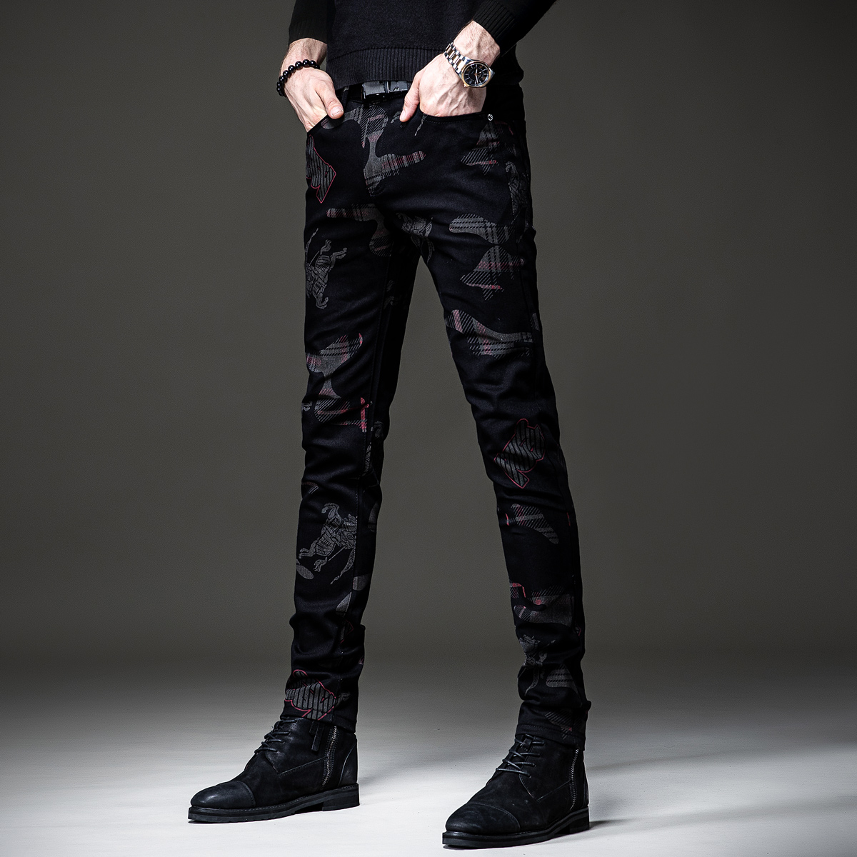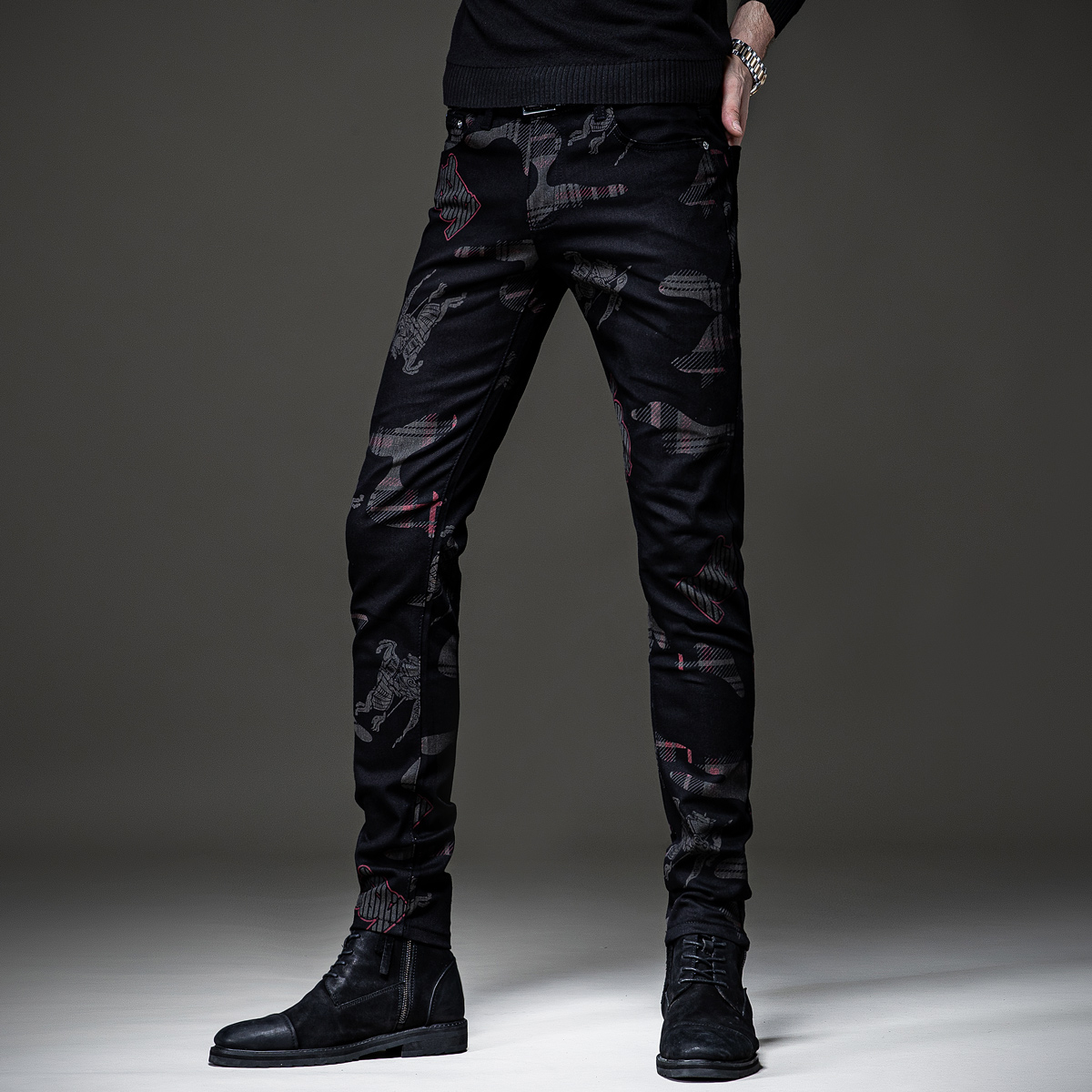 这款牛仔裤的设计很有特色,高腰的版型,很好的修饰了身材比例,显瘦效果很棒,搭配一件T恤,就能轻松穿出时尚感。