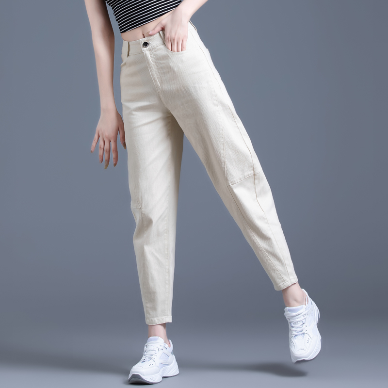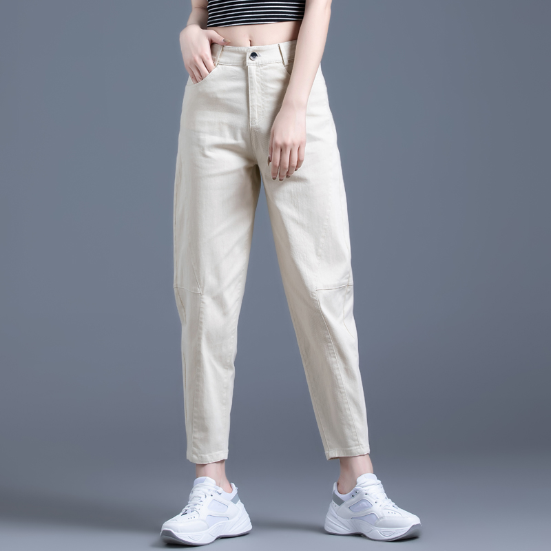 高腰设计,拉长身材比例。高腰牛仔裤,显瘦显腿长。直筒裤型,修饰腿部线条。