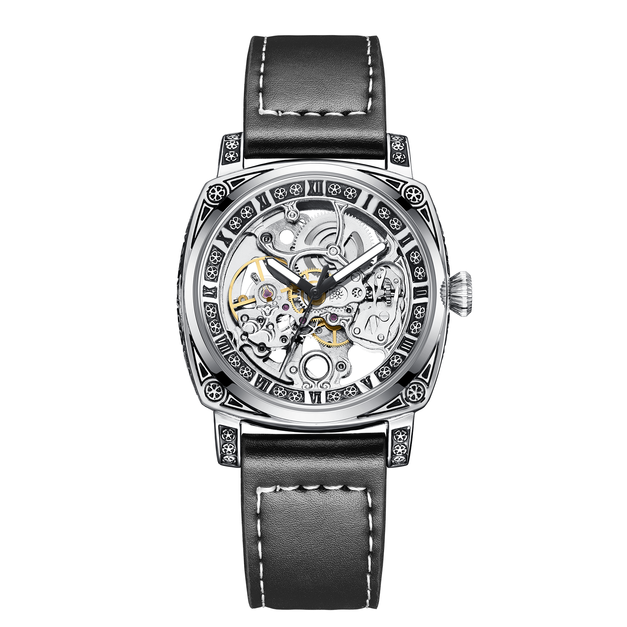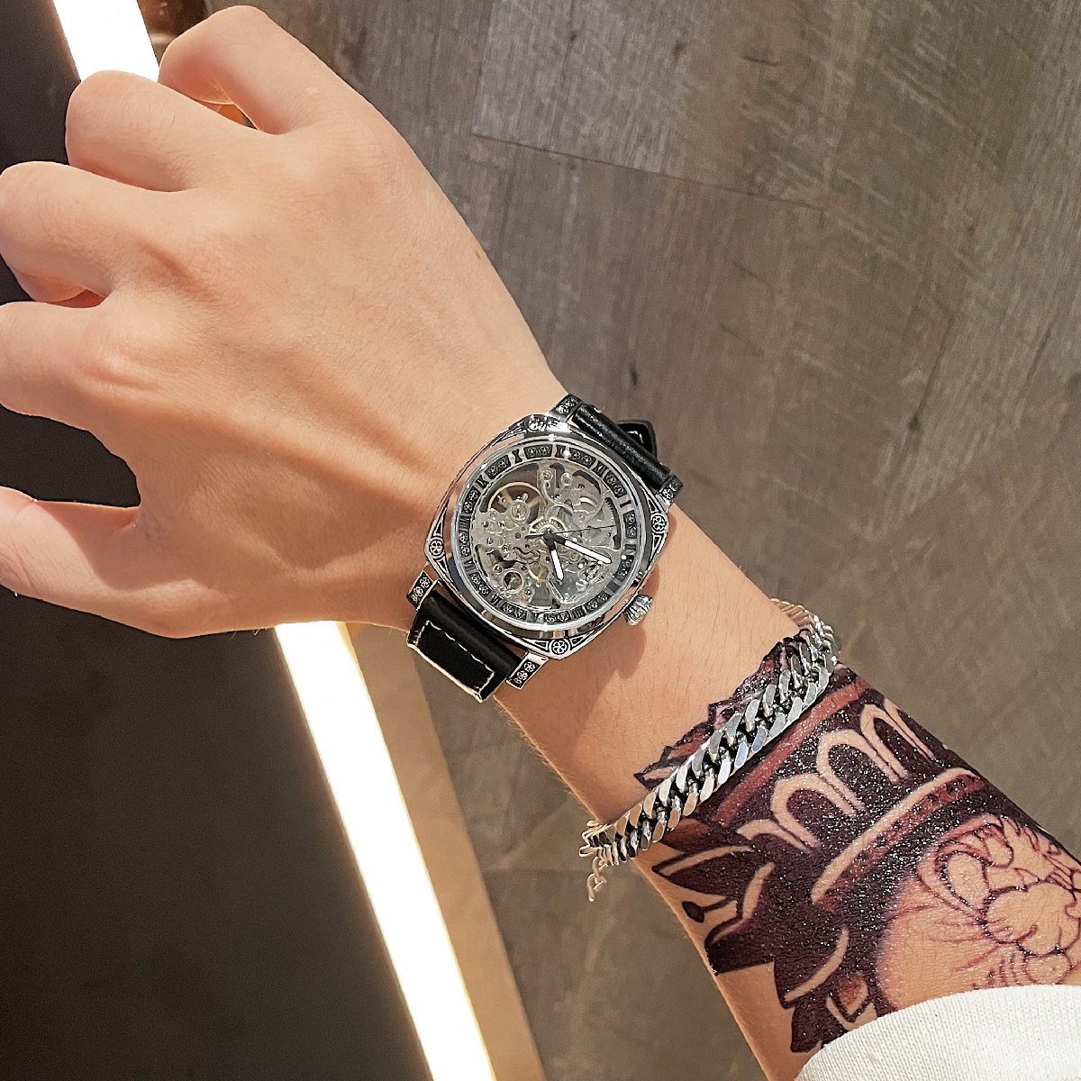 此款男士机械表采用人工合成蓝宝石镜面制作而成,防水防刮,耐磨耐刮,佩戴舒适,表盘采用精钢材质打造,具有良好的耐磨性和抗腐蚀性。
