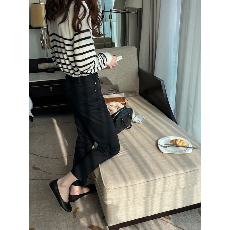 这款裤子采用了优质的牛仔面料,手感柔软,穿着舒适,高腰的设计,拉长腿部线条,显瘦效果很好,搭配一件T恤,就能轻松穿出时尚感。