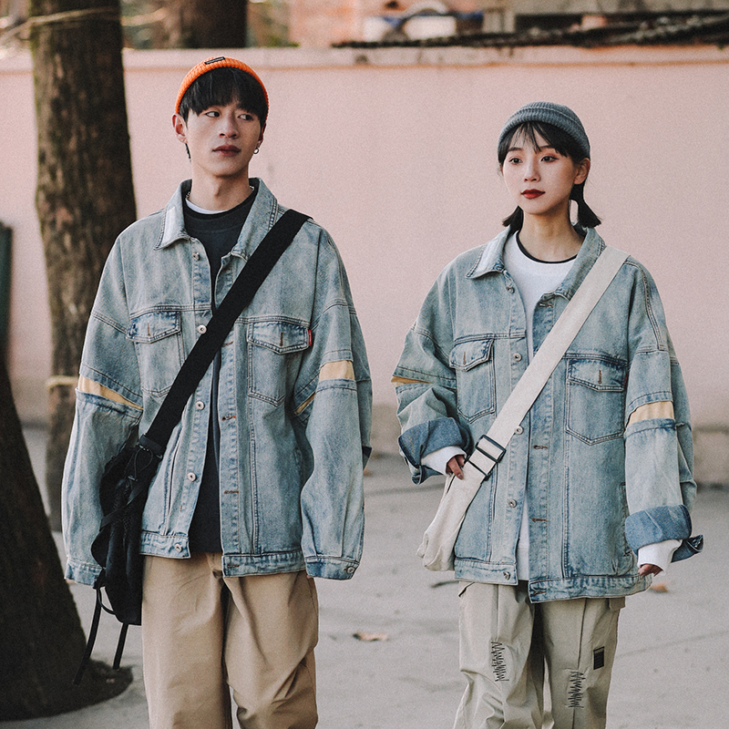 短款外套,拉长身材比例,宽松版型,穿着舒适自在,撞色拼接设计,个性时尚,日系复古风格,清新文艺。