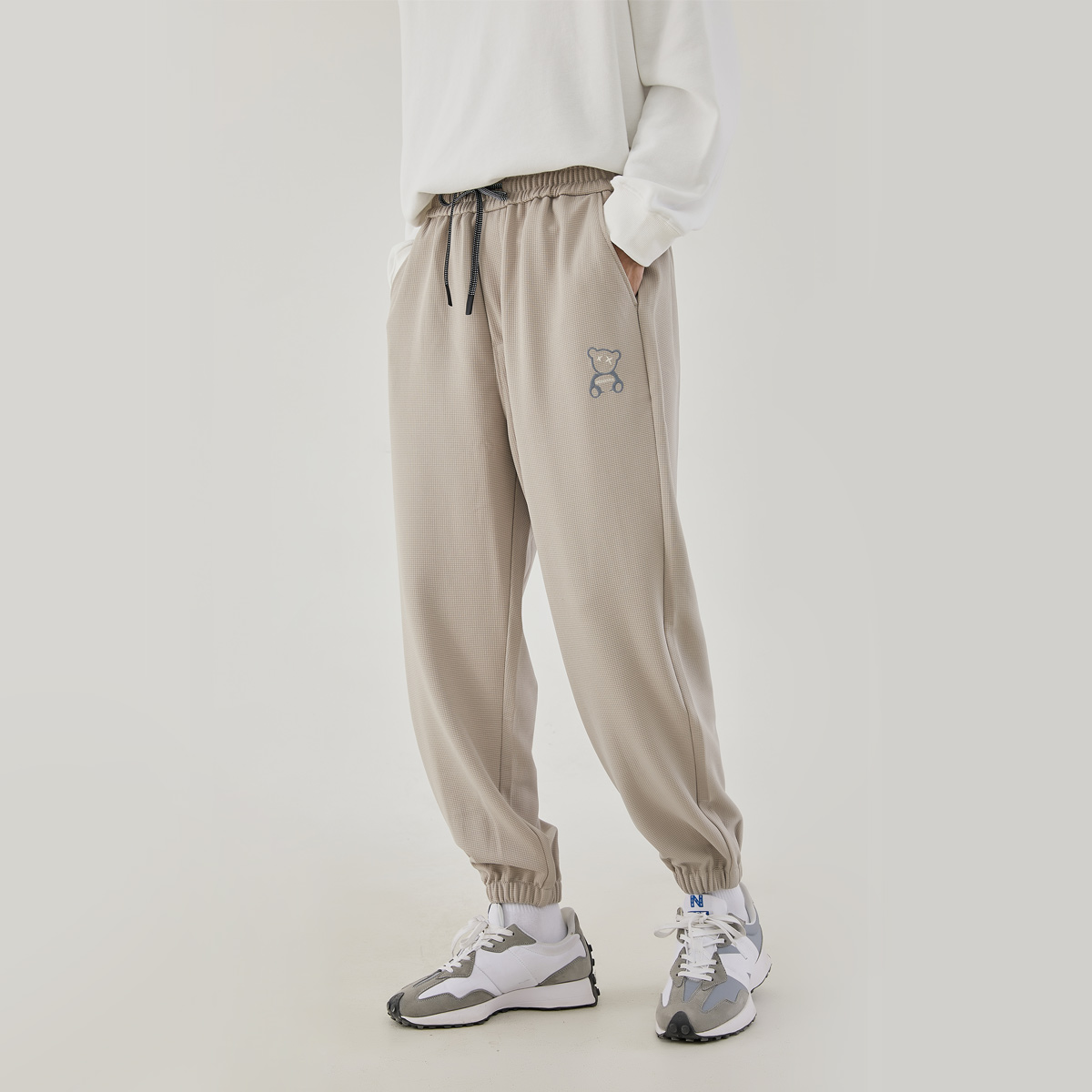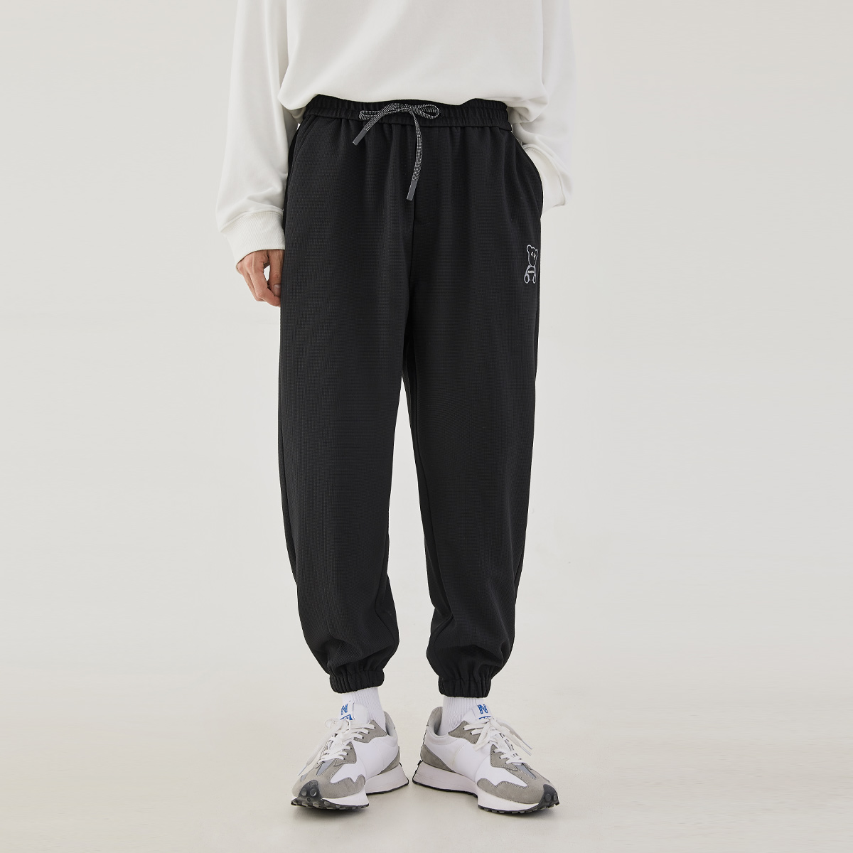 裤身的卡通图案,增添了几分趣味性,宽松的版型,穿着舒适自在,搭配一件T恤,就能轻松驾驭,帅气十足。
