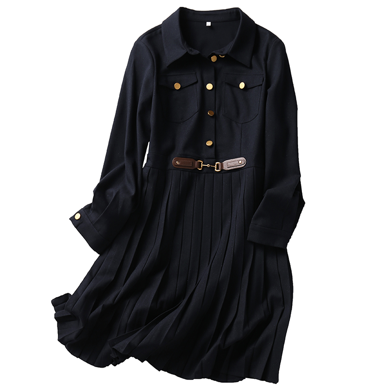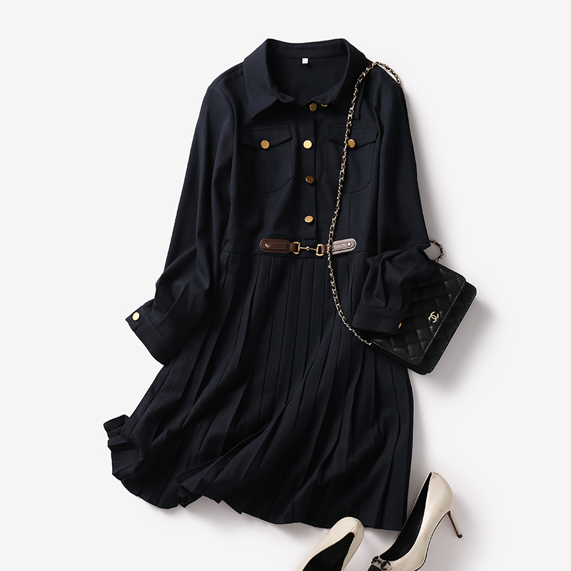 简约的纯色连衣裙,时尚的翻领设计,修饰颈部线条,宽松的版型,不挑身材,穿着舒适自在,优质的面料,亲肤透气,上身优雅时尚。