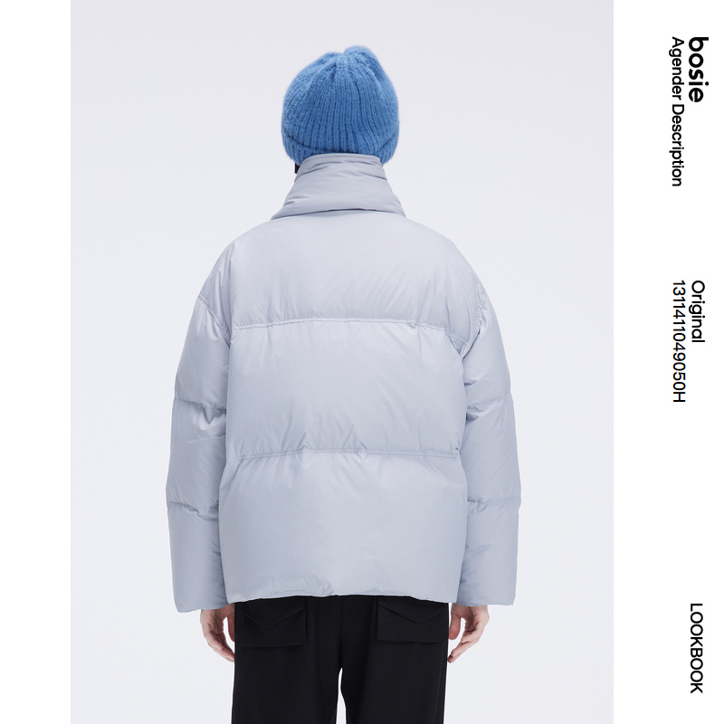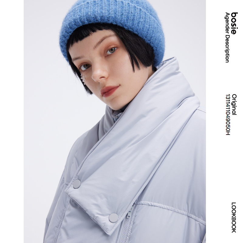 中长款羽绒服,保暖舒适。立领设计,修饰脖颈曲线。短款外套,拉长身材比例。
