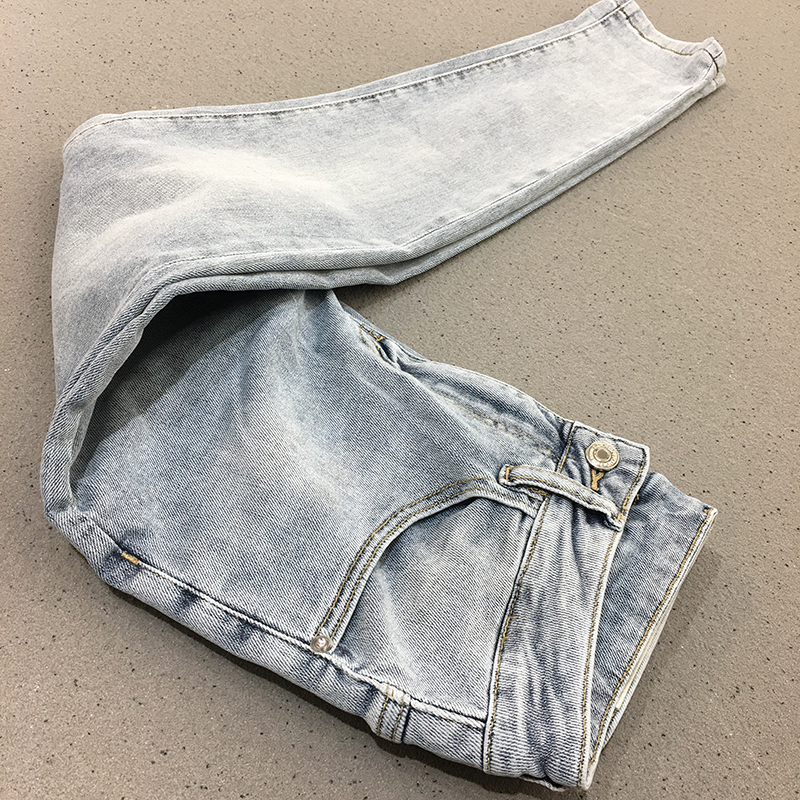 这款牛仔裤采用优质的牛仔面料,穿着舒适透气,修身的版型,上身效果很好,很显瘦,搭配一件T恤,就能轻松穿出潮男范。