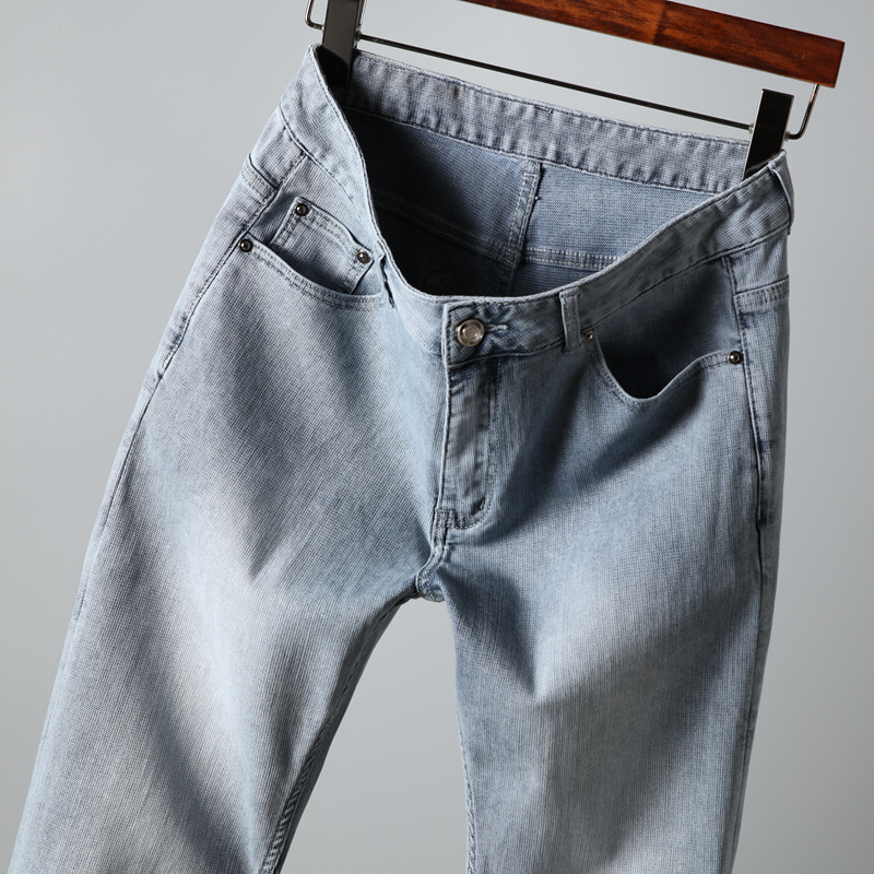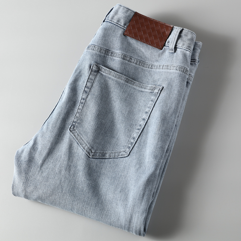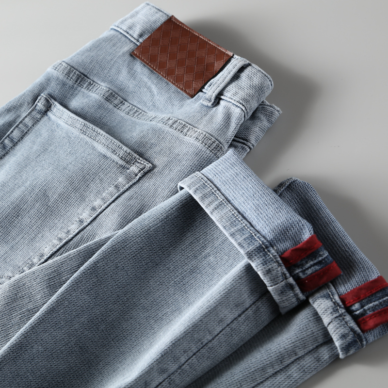 牛仔裤一直都是很有休闲感的单品,这款牛仔裤结合了撞色的拼接处理,让裤子更有层次感。