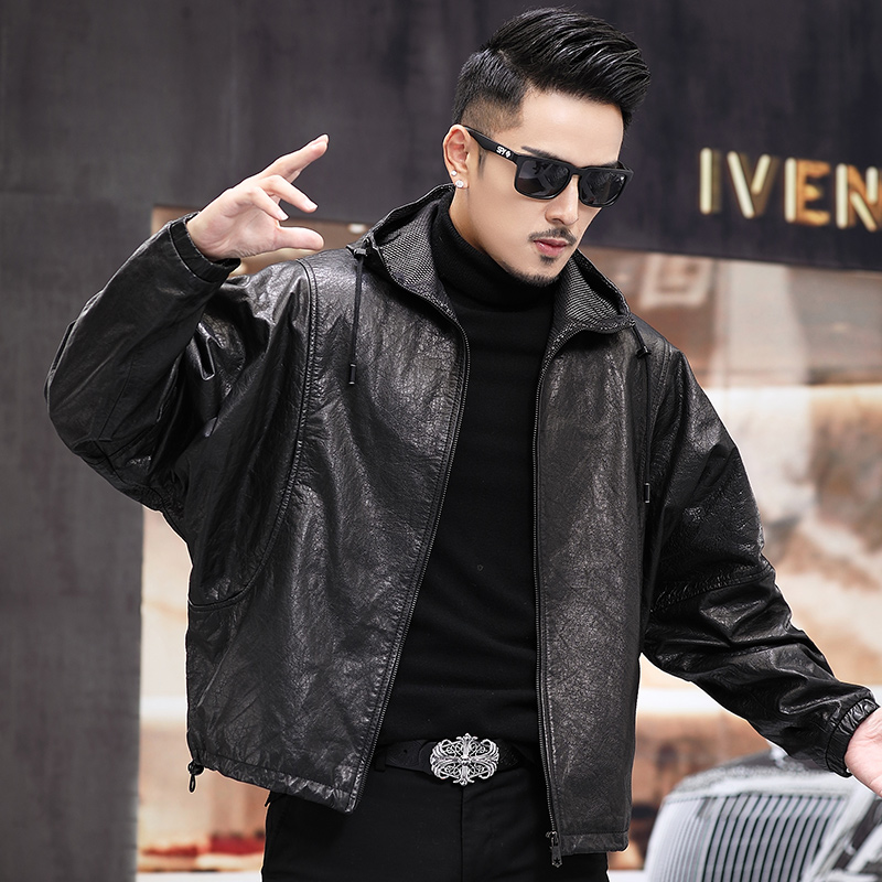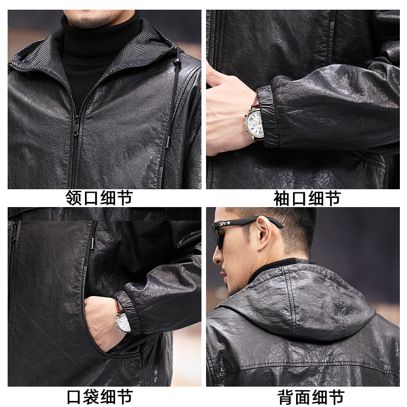 真皮材质,穿着舒适透气,宽松夹克版型,帅气有型,短款外套,拉长身材比例。