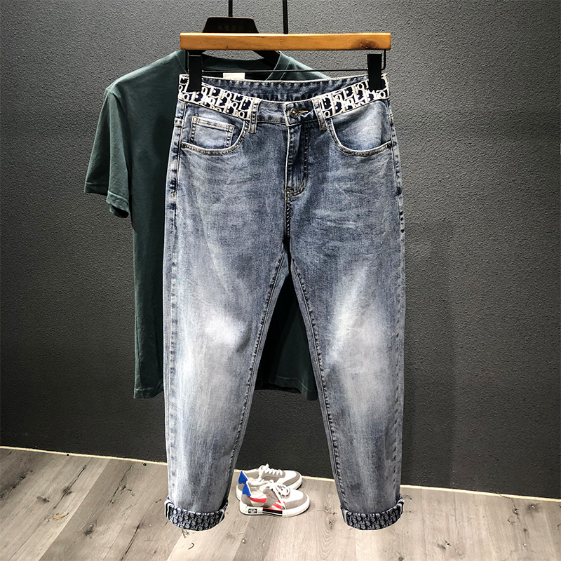 这款牛仔裤采用了经典的牛仔面料,搭配上修身的版型,上身效果很好,很显瘦,裤脚的毛边设计,更显时尚感。