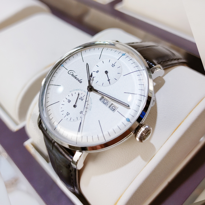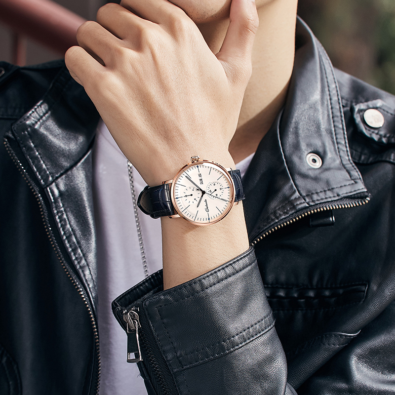 这款男士全自动机械表,采用人工合成蓝宝石表镜材质,清晰度高,硬度高,耐磨性好。