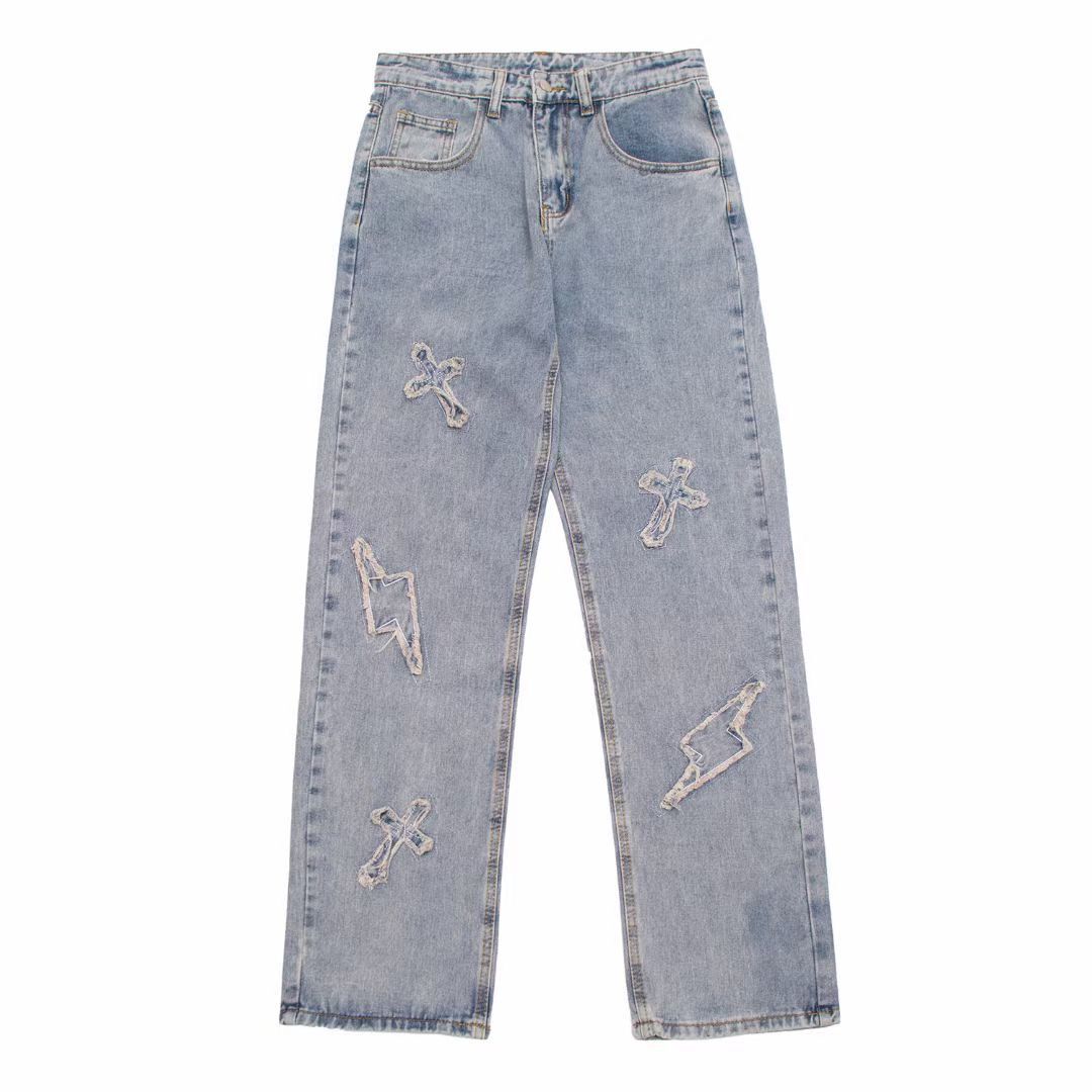 原创设计,让你彰显个性,牛仔裤,穿着舒适不紧绷,个性印花,彰显时尚潮流,宽松裤型,穿着舒适自在。