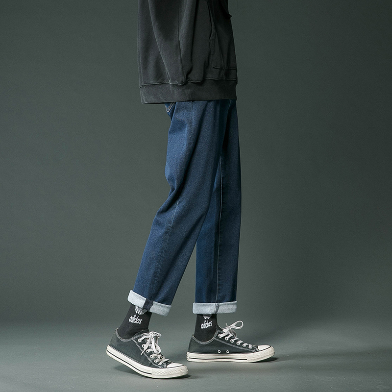 高腰设计,拉长身材比例。高腰牛仔裤,显瘦显腿长。直筒裤型,修饰腿部线条。