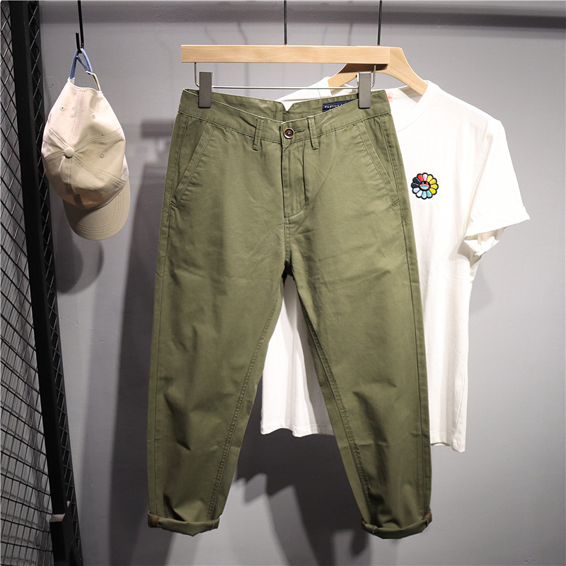 九分裤长,露出纤细脚踝。休闲裤,让你穿出大长腿。
