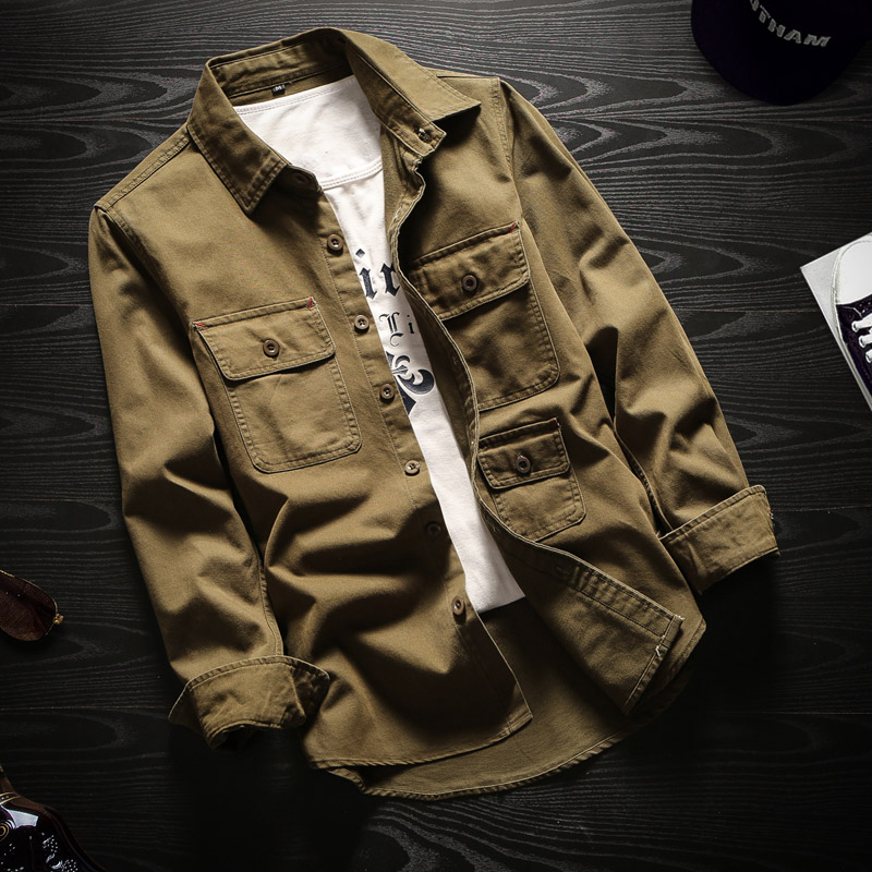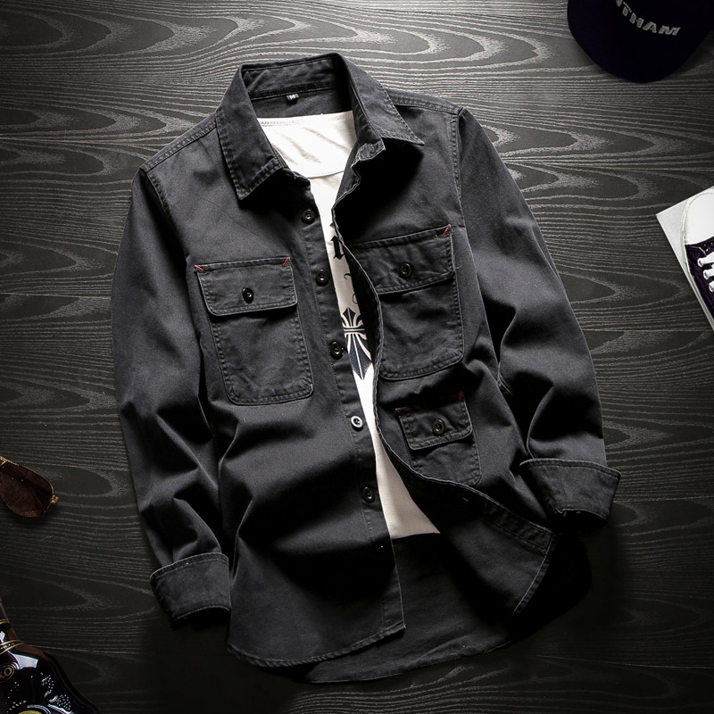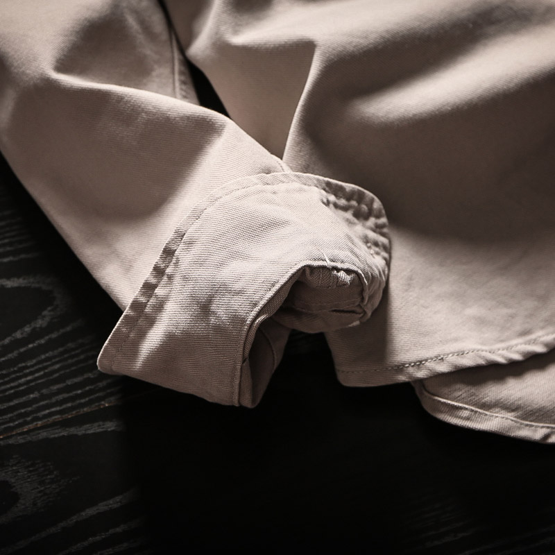 宽松版型,穿着舒适自在,长袖设计,修饰手臂曲线,衬衫翻领,修饰颈部线条。