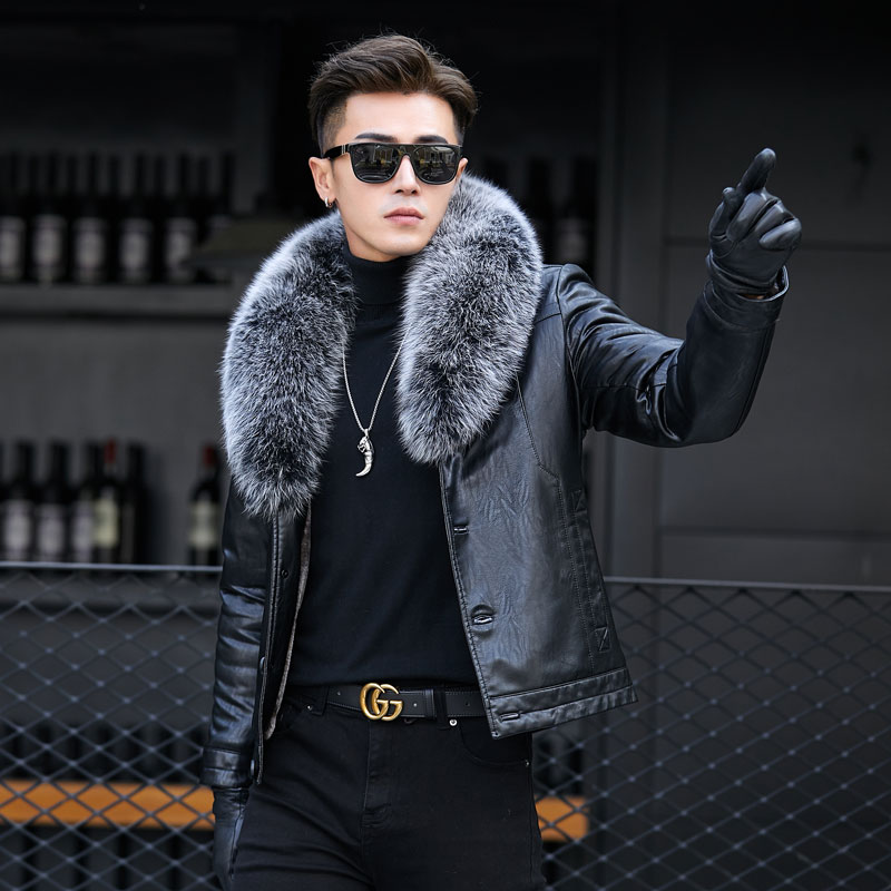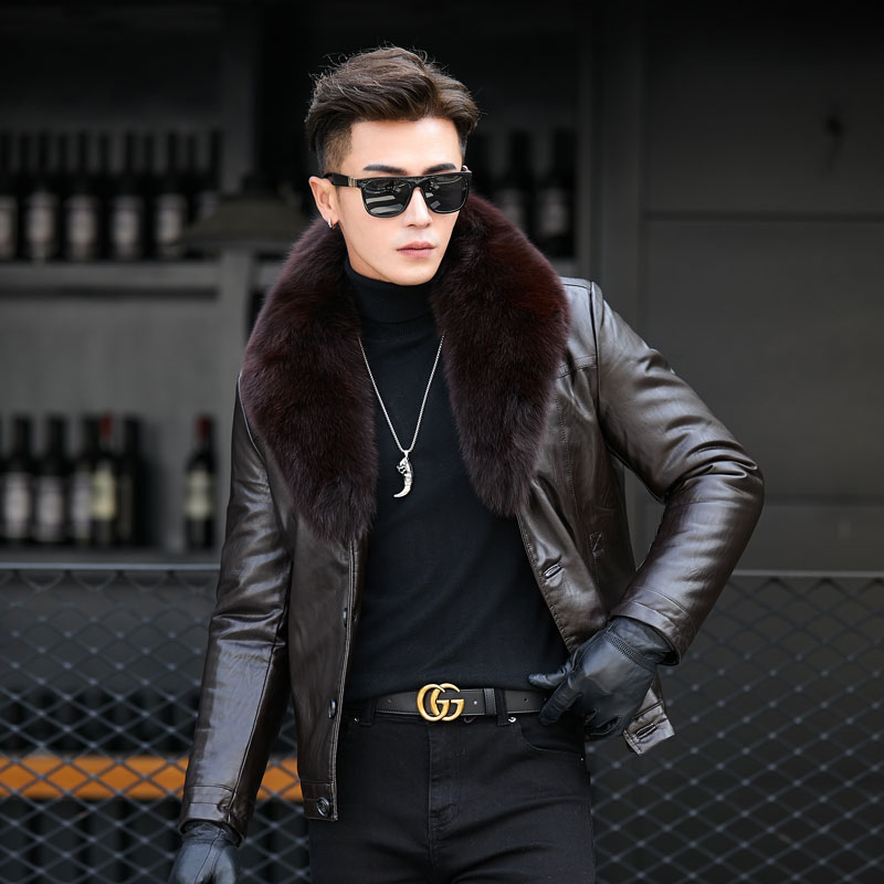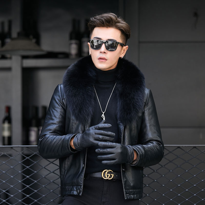 精选优质的绵羊皮材质制作,质感细腻,手感柔软舒适,内里加绒加厚,保暖效果好,经典的翻领设计,修饰颈部线条,凸显男士的干练。