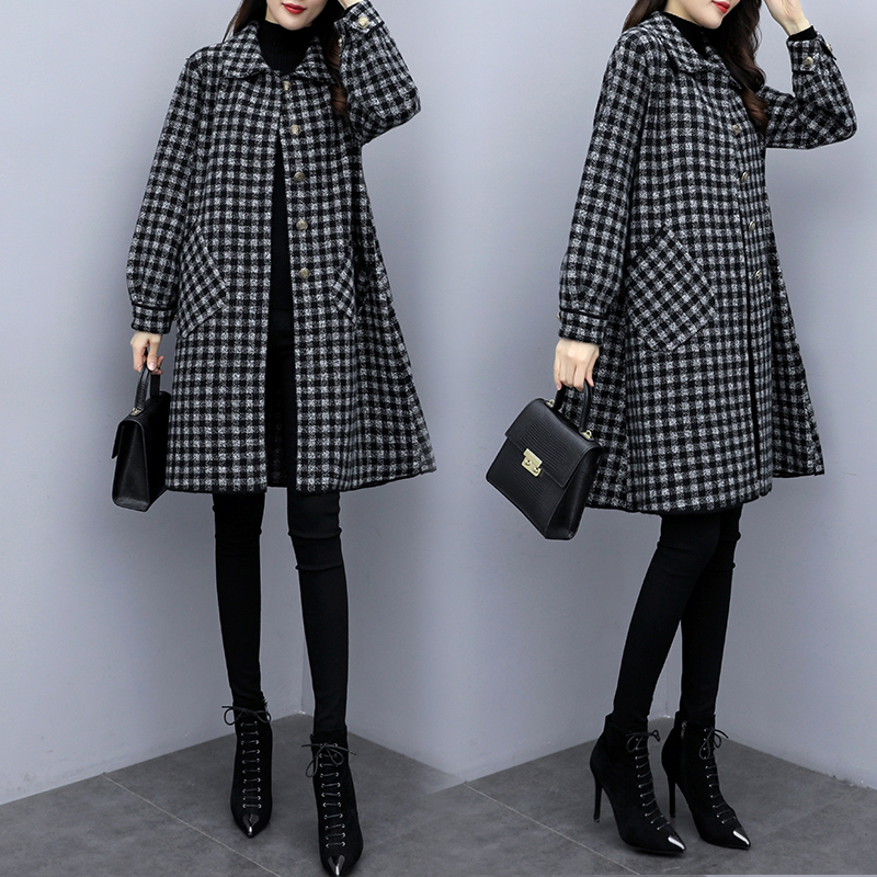 中长款的版型,修饰身材。经典格子元素,复古时尚。中长款风衣,穿出大长腿。