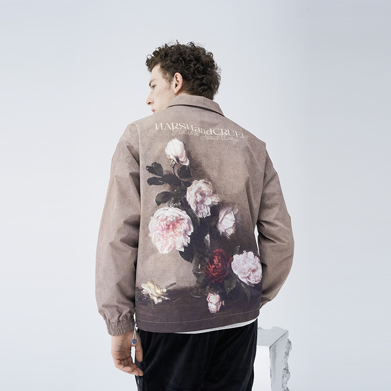 短款外套,拉长身材比例。复古印花,彰显时尚个性。经典夹克版型,帅气有型。
