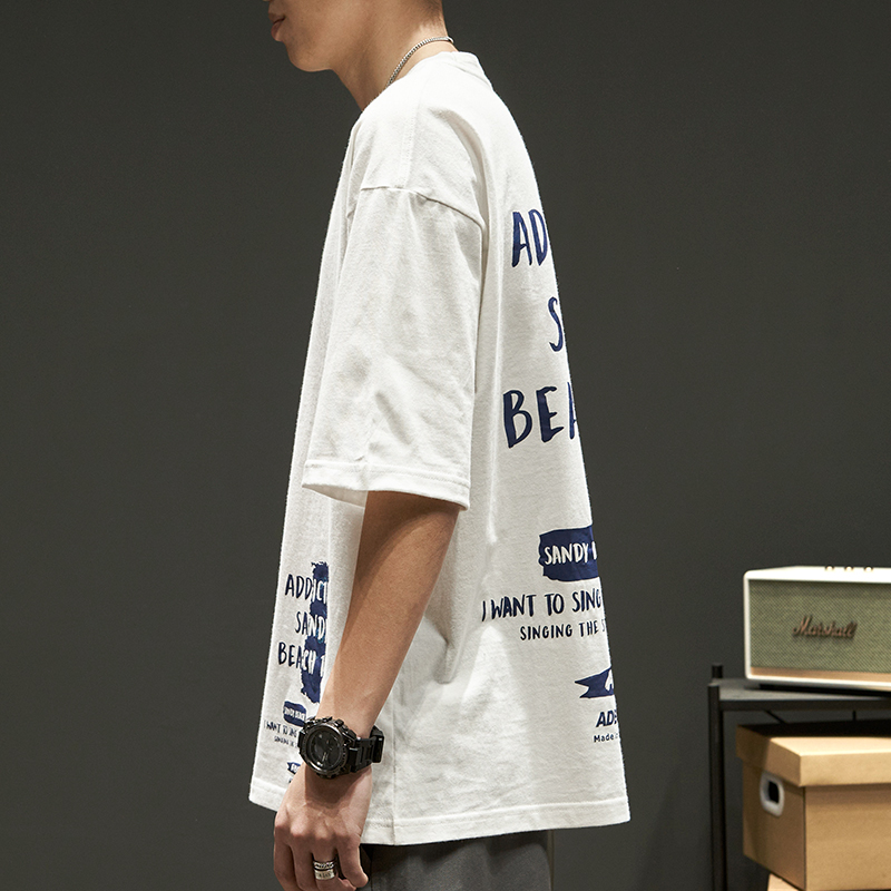 字母印花,彰显青春活力。宽松T恤,让你轻松驾驭。半袖设计,修饰手臂线条。