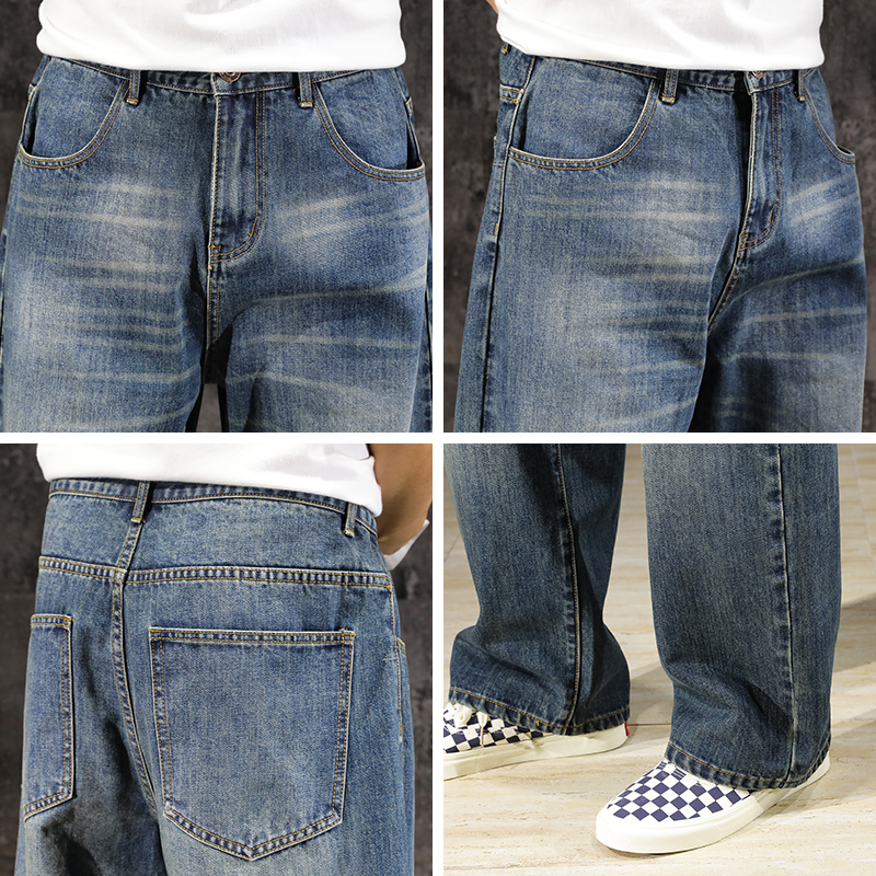 休闲裤,让你穿出大长腿。直筒裤型,修饰腿部线条。水洗做旧工艺,复古时尚。