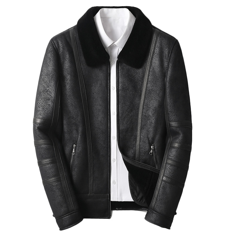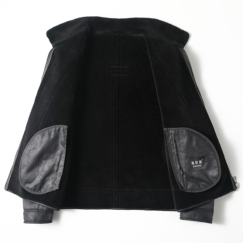 立体裁剪的版型设计,可以起到很好的修身效果,更能展现男性挺拔身姿。衣身采用优质羊皮毛一体面料制作,手感柔软舒适。