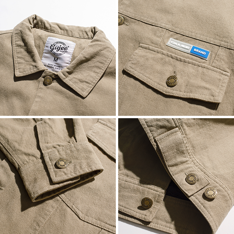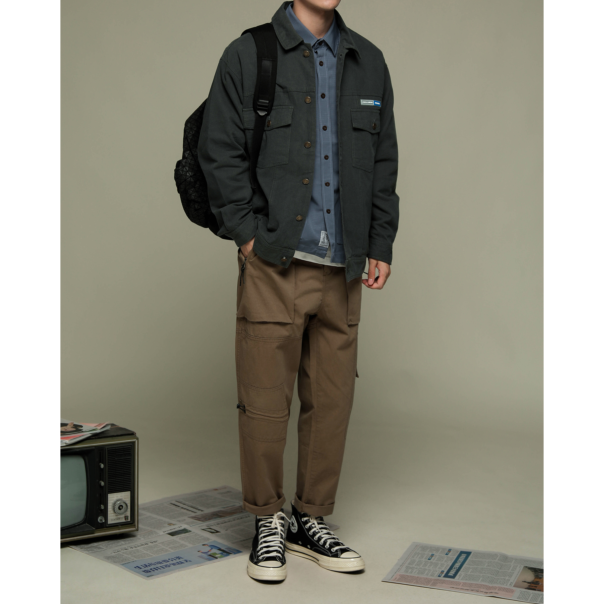 夹克采用了工装的版型设计,搭配上多口袋的设计更显时尚感。