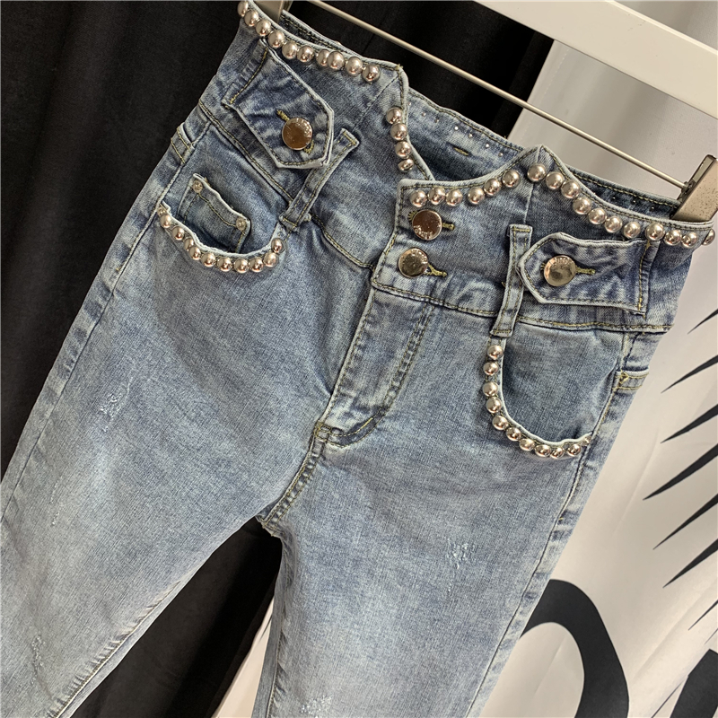 这款牛仔裤的设计很有特色,高腰的版型,很好的修饰了身材比例,显瘦效果很棒,搭配一件T恤,就能轻松穿出时尚感。