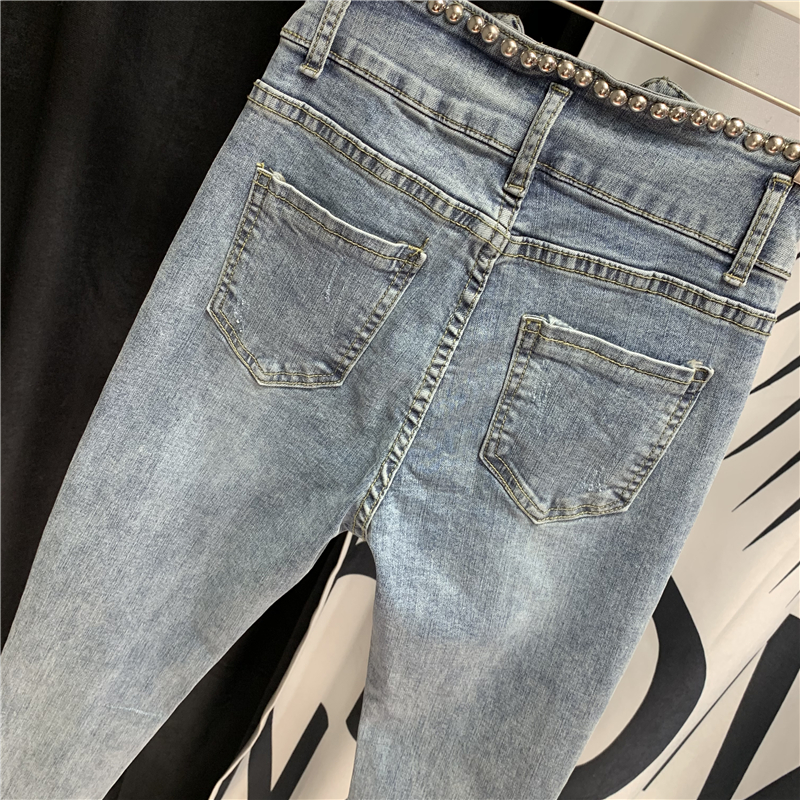高腰设计,拉长身材比例。高腰牛仔裤,显瘦显腿长。直筒裤型,修饰腿部线条。