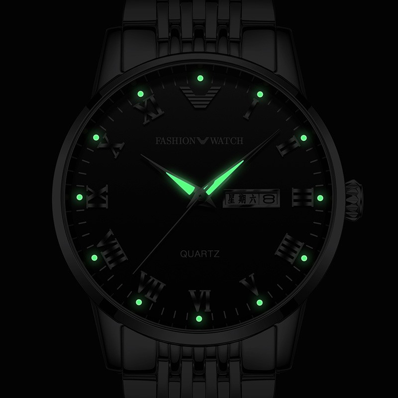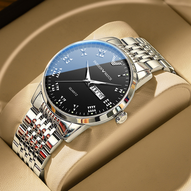 手表采用人工合成蓝宝石镜面材质,硬度高,防刮耐磨,精钢表壳,坚固耐用。精钢表带,具有良好的防水性能,佩戴舒适。