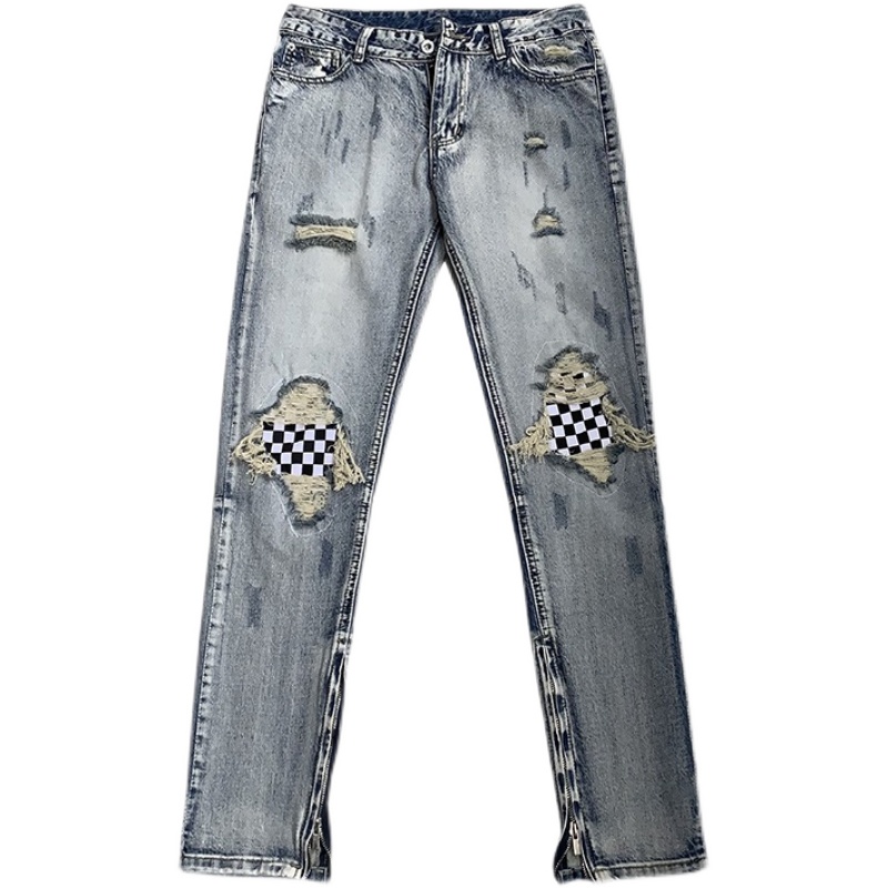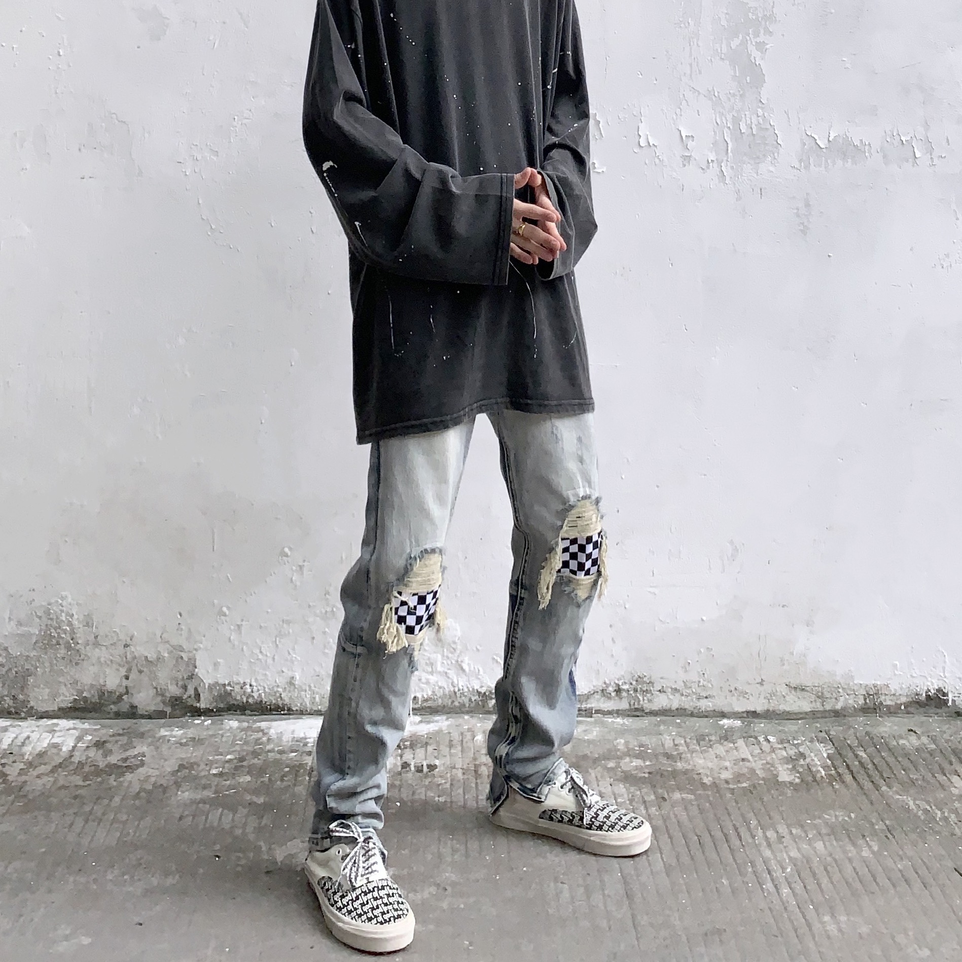 牛仔裤采用了水洗工艺,手感柔软,穿着舒适,破洞的设计,更显时尚潮流,宽松的版型,不挑身材,上身效果很好。