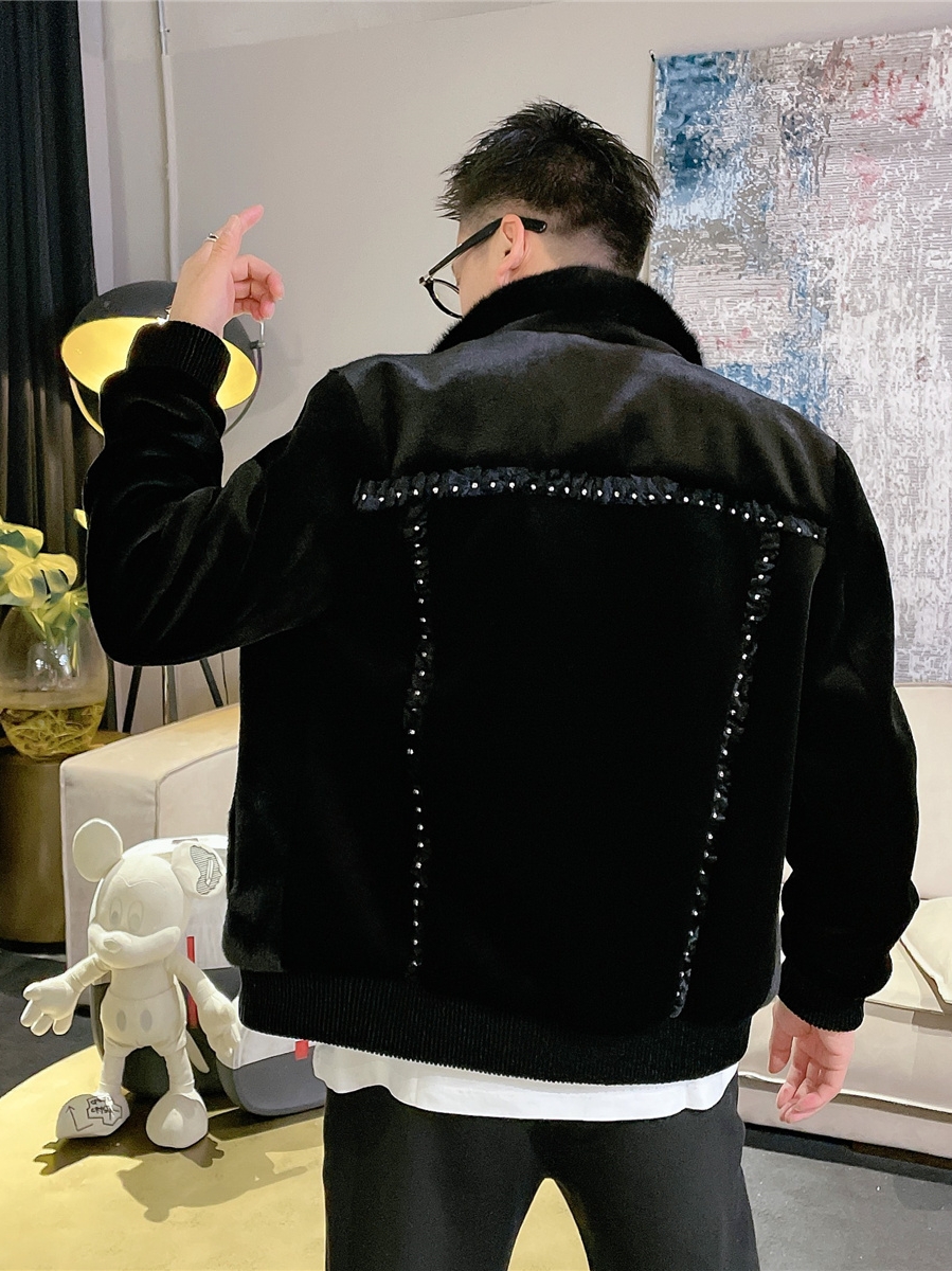 柔软的仿狐狸毛领翻领设计很好的修饰了的轮廓,而且易于清洁帅气风的夹克款式外套,莫过于选择一款麂皮绒外套,经典系搭配皮毛的质感,冬季想的温暖又时尚,保暖又不显臃肿奢华的感官效果让人穿搭显中性风采,很适合街拍的一款外套设计,精选优质的仿的皮毛一体设计,彰显女神高贵气质甜而不腻立体剪裁的版型手感柔软垂坠感佳。