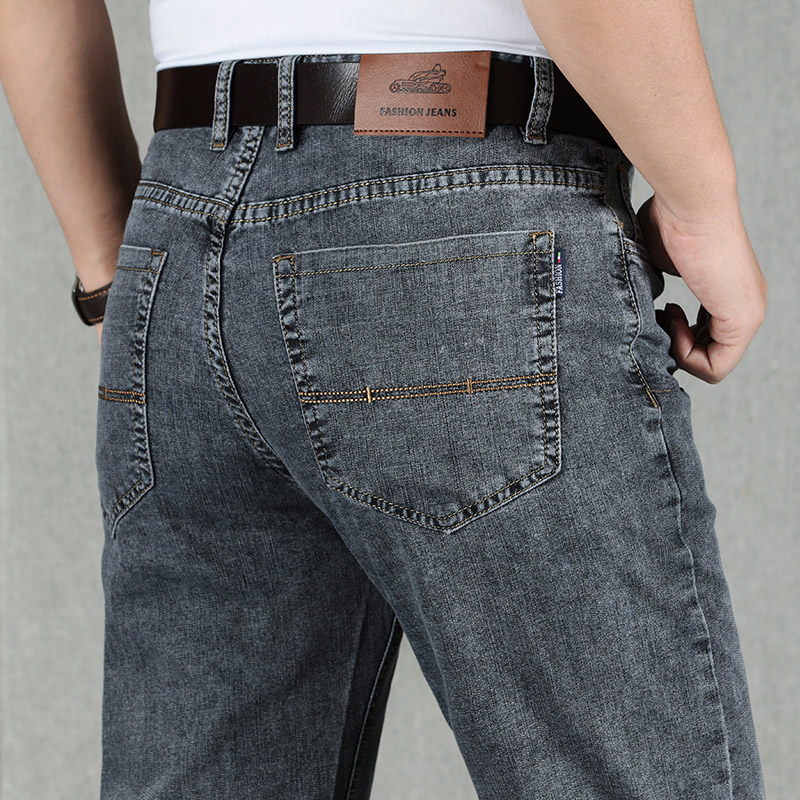 这是一款专为中老年设计的牛仔裤,采用了直筒的版型设计,能够很好的修饰腿部线条,穿在身上更加显瘦。