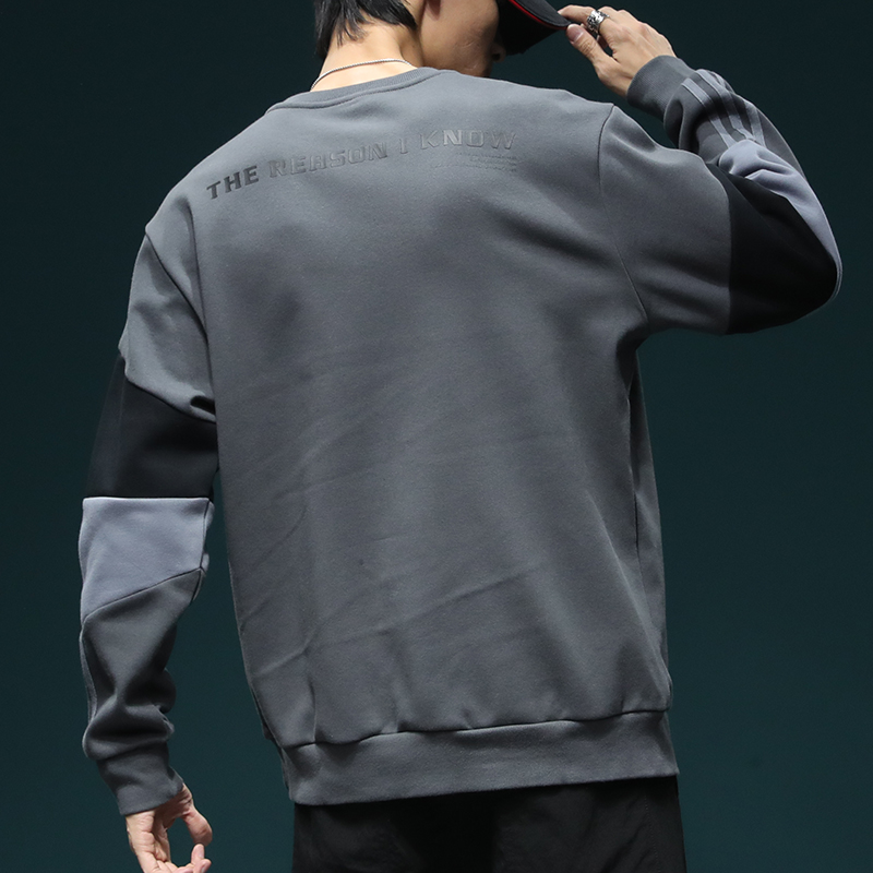 加绒材质,穿着舒适保暖,圆领套头设计,方便穿脱,胸前字母印花,个性十足,宽松卫衣,穿着舒适自在。