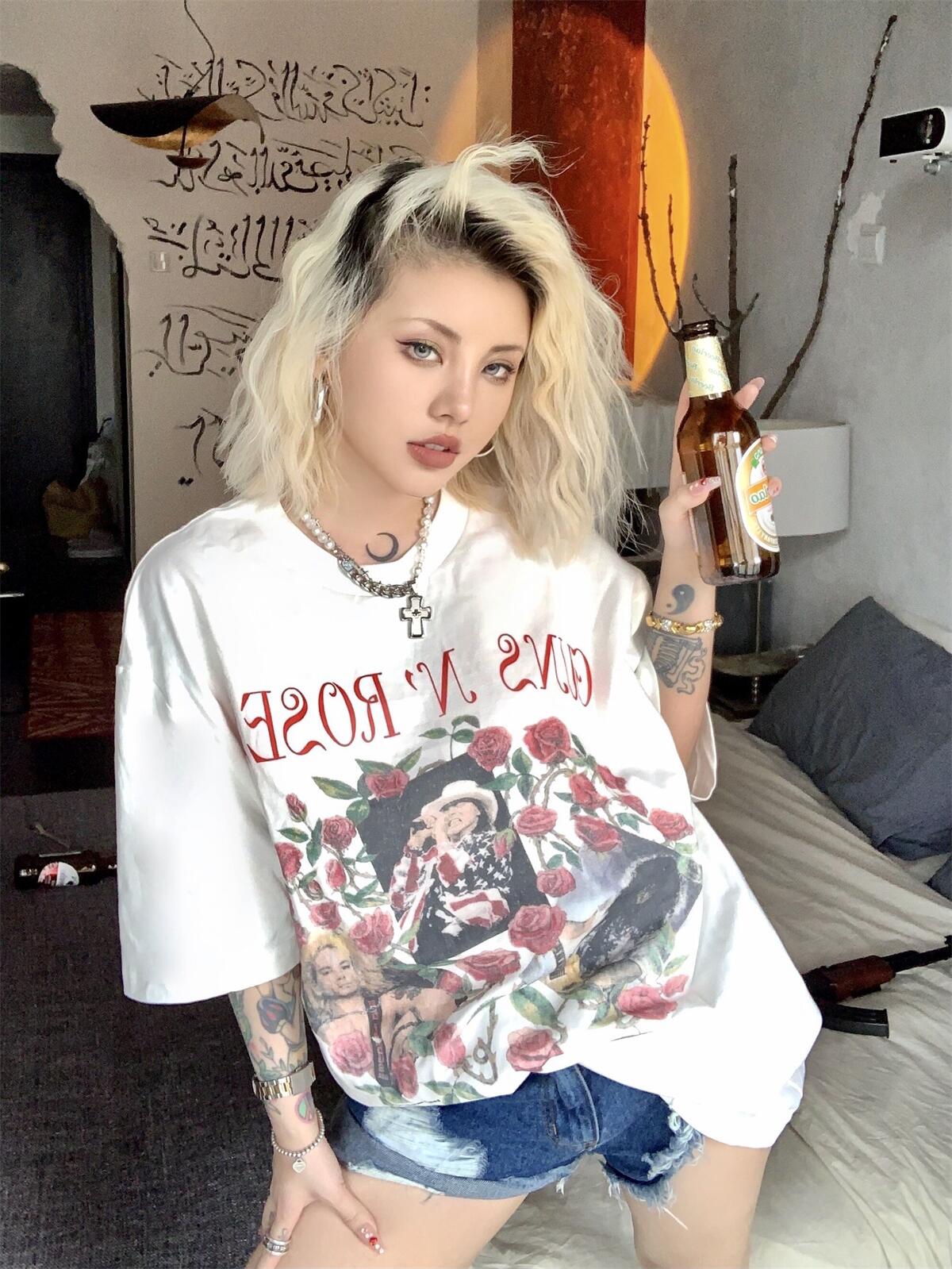 原创潮牌推出的T恤,采用了经典的圆领设计,搭配上宽松的版型,穿着舒适自在,衣身的印花图案,充满了复古的气息,同时也为整体增添了几分复古气息。