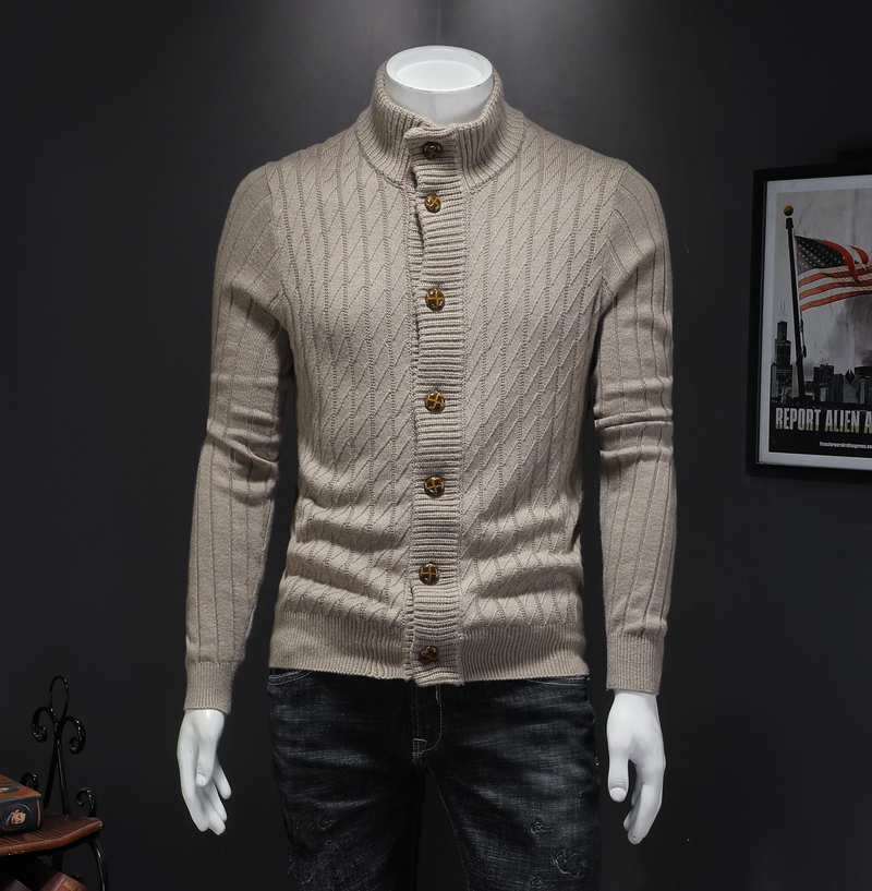 开衫设计,穿脱更加方便,针织材质,穿着舒适透气,半高领设计,保暖又时尚,修身版型,凸显身材曲线。