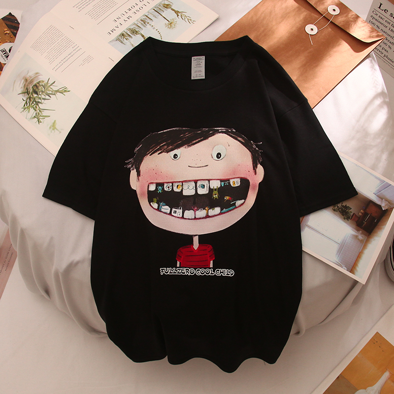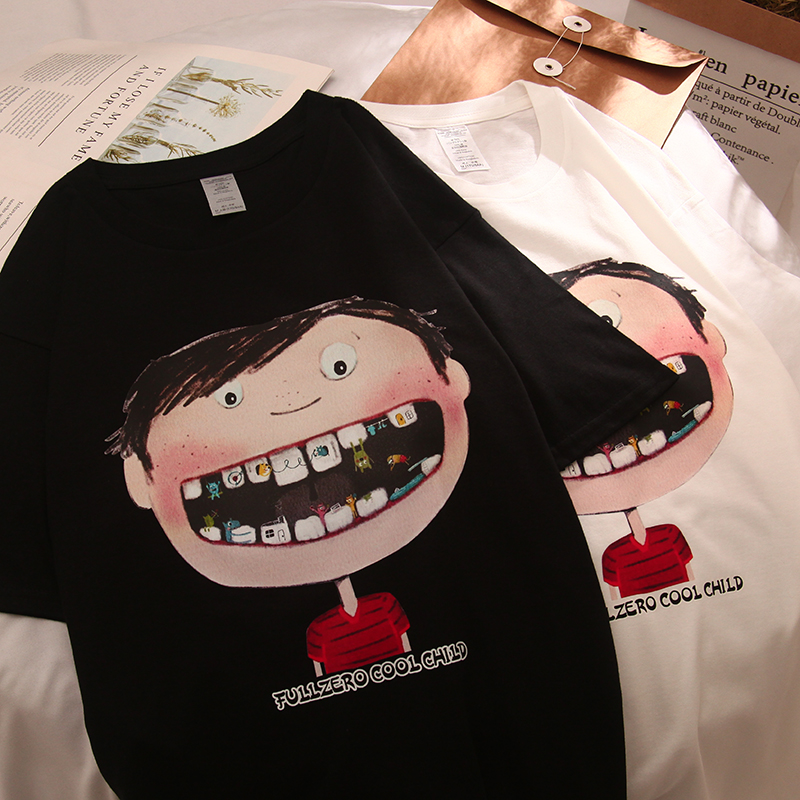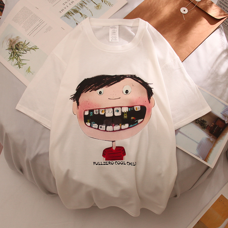 趣味的卡通印花,充满了童趣,宽松的版型,穿着舒适自在。