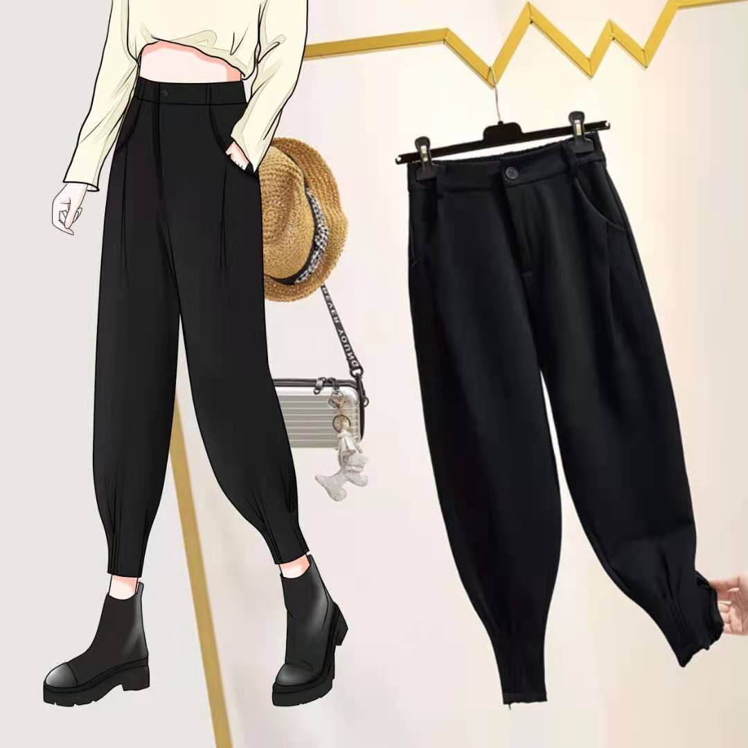 高腰裤型,拉长腿部线条,宽松灯笼裤,遮肉又显瘦,宽松版型,穿着舒适自在。