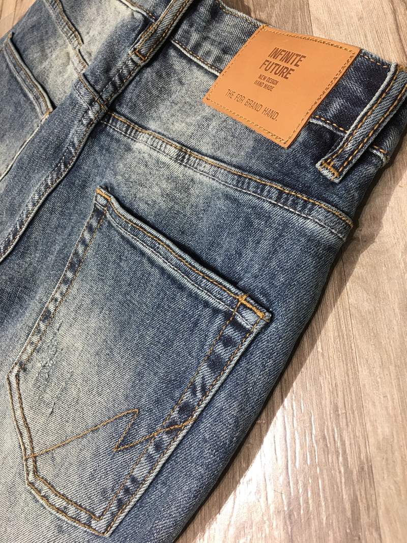 这款牛仔裤采用优质面料,经过水洗工艺处理,手感柔软舒适,穿着亲肤透气。