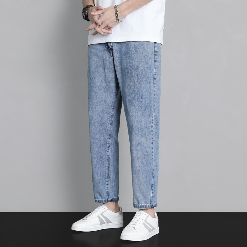 高腰设计,拉长身材比例。高腰牛仔裤,显瘦显腿长。直筒裤型,修饰腿部线条。