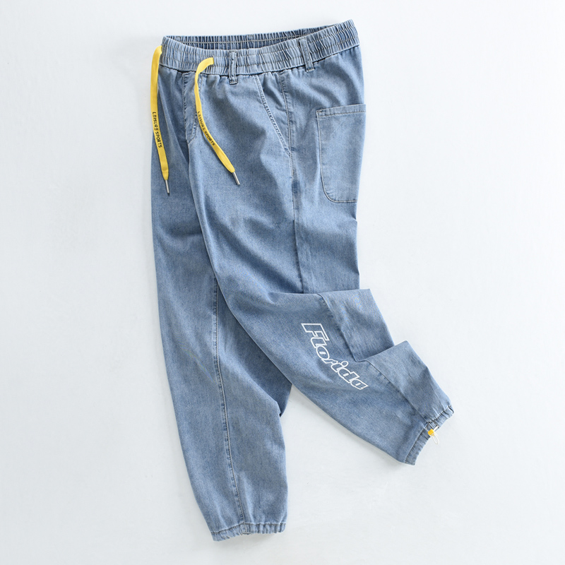 这款牛仔裤来自原创潮牌,裤身采用了印花图案,充满了青春活力感,同时也增添了几分时尚感。