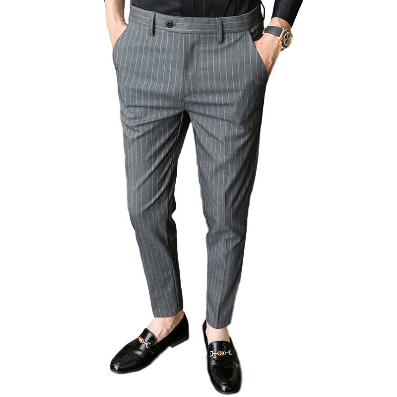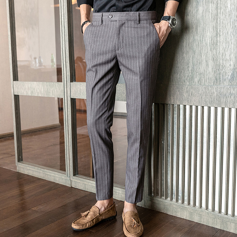 经典的条纹元素,搭配上经典的西装翻领,尽显男士的干练气质。