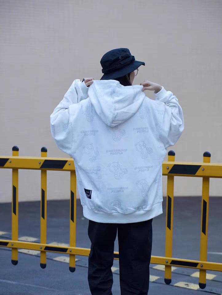 dsp满印小熊连帽卫衣,满版的小熊印花元素,承载着桀骜不驯的街潮感,焕发青春活力味道。让卫衣的层次感显得更加丰富,赋予卫衣更多的时尚感。