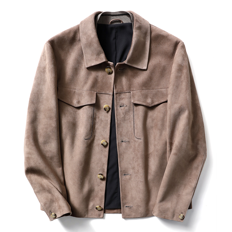 翻领设计,彰显男士魅力。真皮材质,穿着舒适透气。短款外套,拉长身材比例。