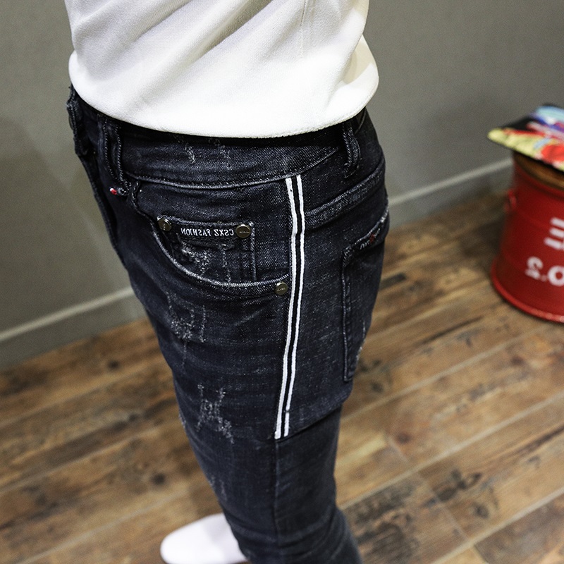 这款牛仔裤采用优质的牛仔面料,手感柔软舒适,穿着亲肤透气修身的版型设计,上身效果非常好,搭配一件T恤,就能轻松穿出潮男范。