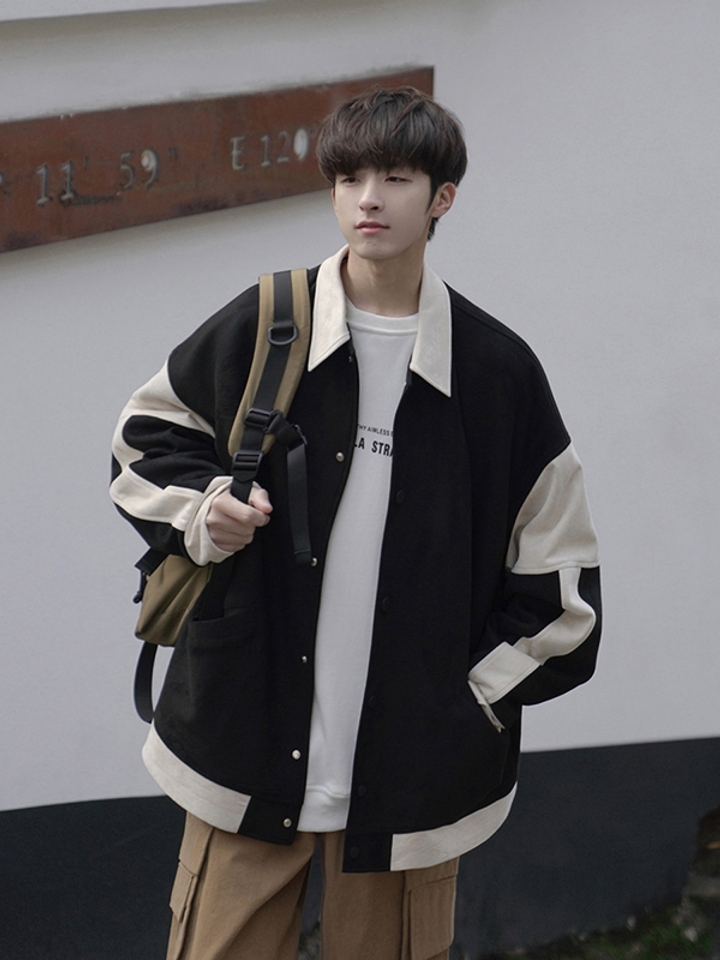 麂皮绒的材质拥有柔软的手感和挺刮的质感,创意的拼色加上立体的版型剪裁很有视觉感, 休闲风十足。搭配一条休闲工装裤,完美凸显身材曲线。