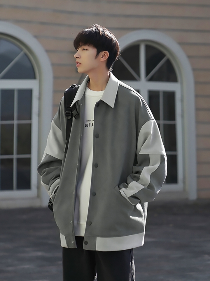 麂皮绒面料的运用使得衣服由内而外的散发出一种古朴的气息,同时设计师采用撞色拼接的设计,使得衣服的古朴中又展现出强烈的个性气质;简洁的纽扣门襟与方领设计,简约随性,凸显出男性的低调内敛品格。