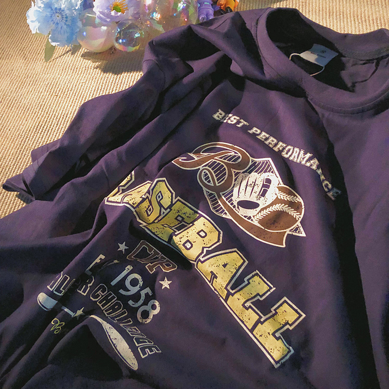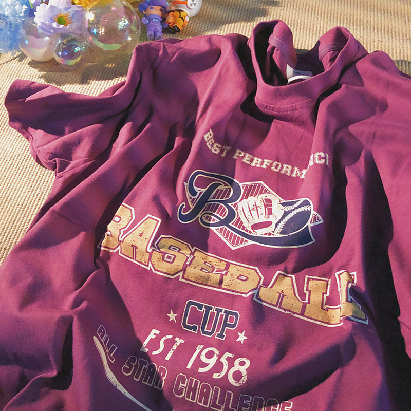 印花图案,彰显品牌魅力,短袖设计,修饰手臂线条,宽松版型,穿着舒适自在,美式复古风格,时尚潮流。