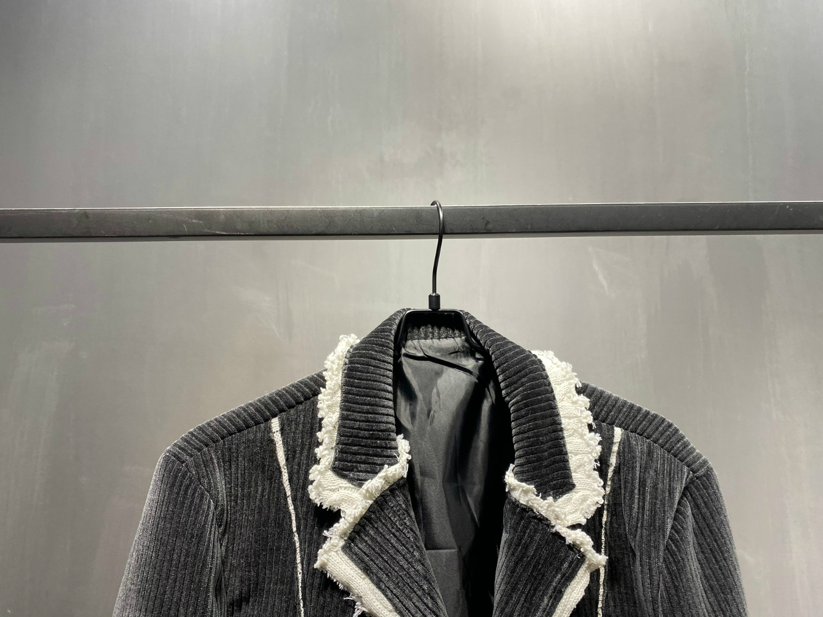 西装翻领,修饰颈部线条,短款外套,拉长身材比例。