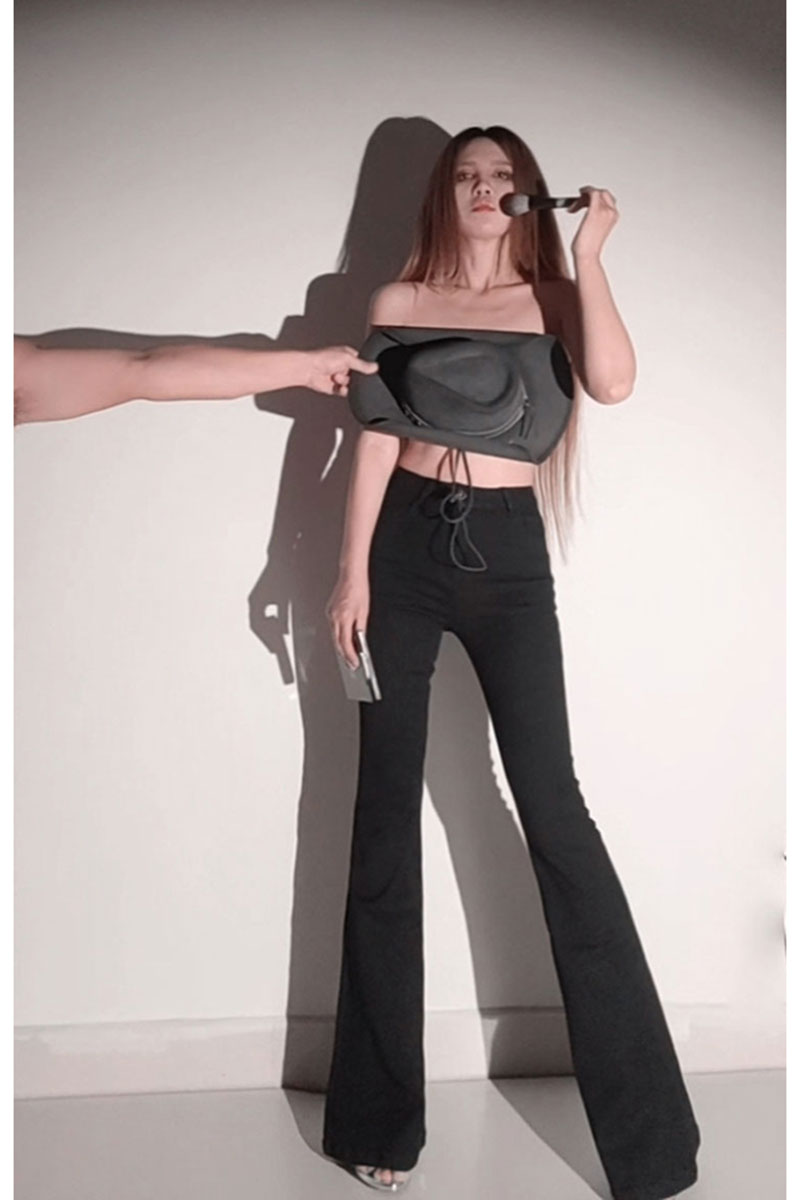 我是觉得这种样式还蛮有设计感的。还有就是高腰设计,拉长身材比例。