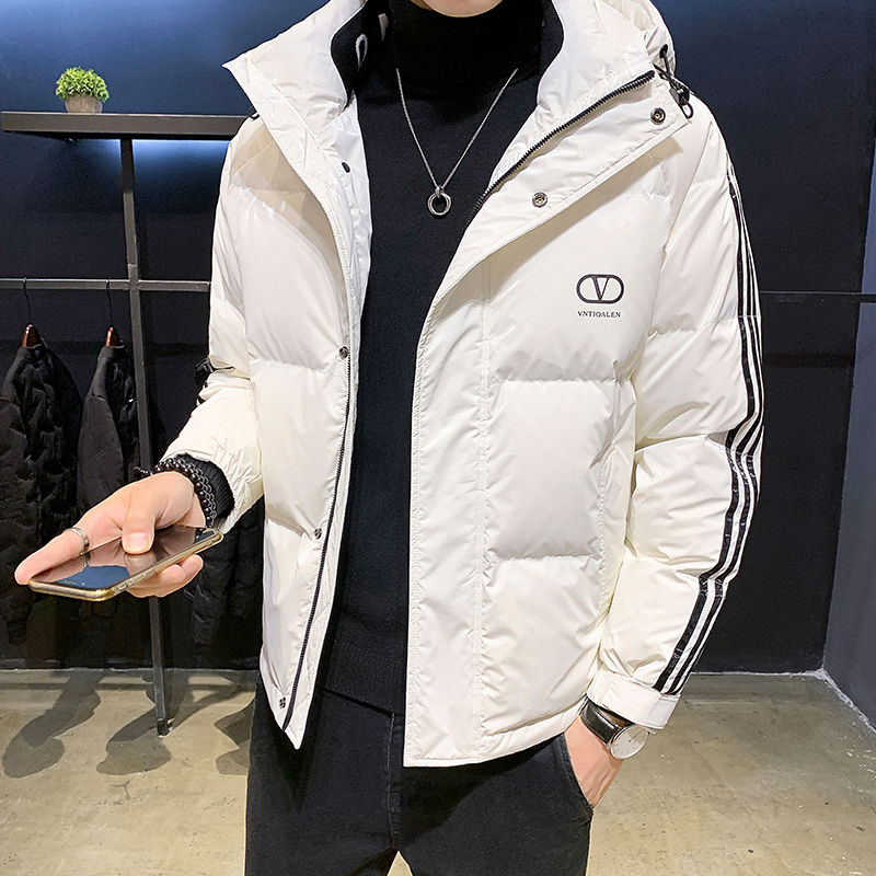 这款羽绒服采用了轻薄的面料,穿着舒适,保暖效果好,连帽设计,防风保暖,时尚的印花,彰显个性,宽松的版型,不挑身材,上身效果很好。