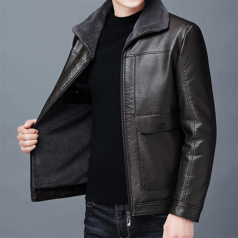 加厚厚实,保暖效果极佳,夹克版型,穿着帅气有型,短款外套,拉长身材比例,加绒材质,穿着舒适保暖。